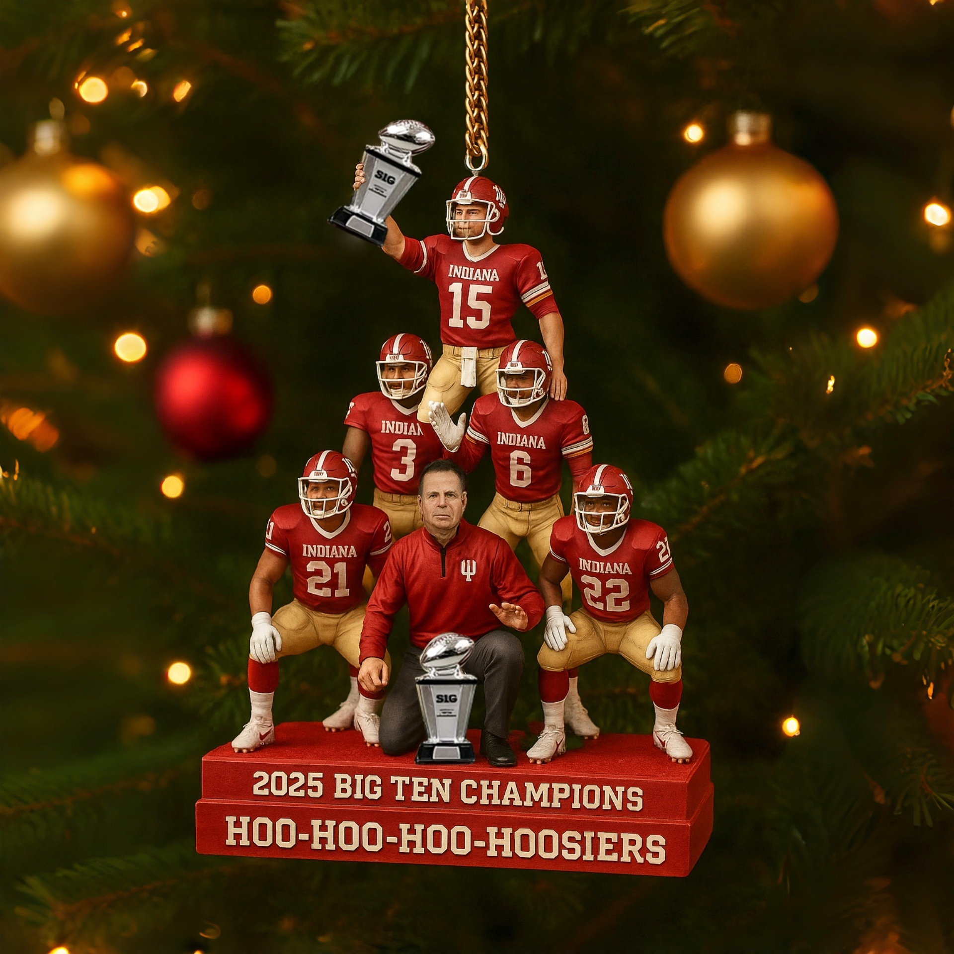 🏆❤️Celebrate the season that shocked college football. At 13–0, the Hoosiers became the last unbeaten team in major college football and captured their first outright Big Ten Championship since 1945—a once-in-a-lifetime achievement now preserved in this unforgettable Victory Team ornament.