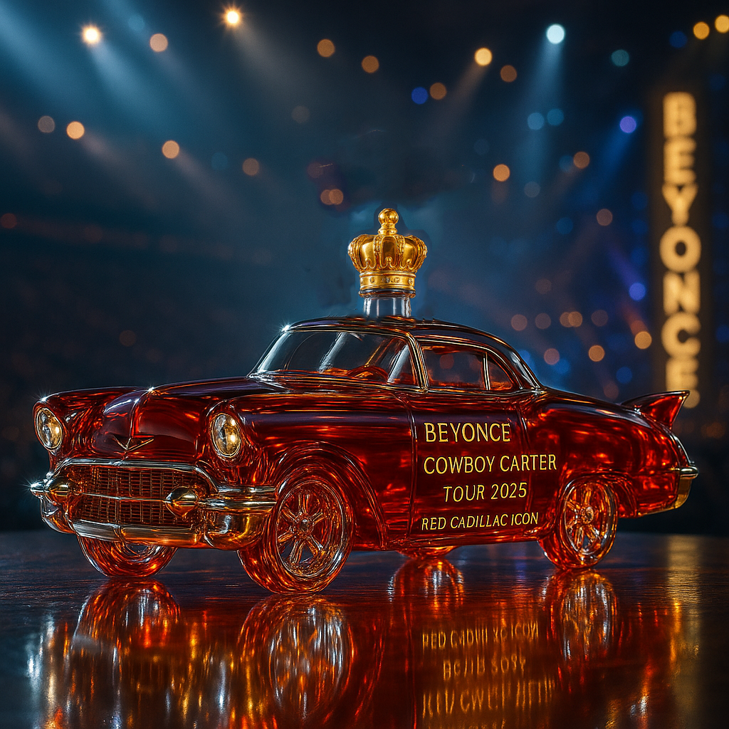 🎁For collectors, superfans, and design enthusiasts, the Red Cadillac Whiskey Bottle isn't just décor—it's Beyoncé's Cowboy Carter Tour, captured in glass and gold.