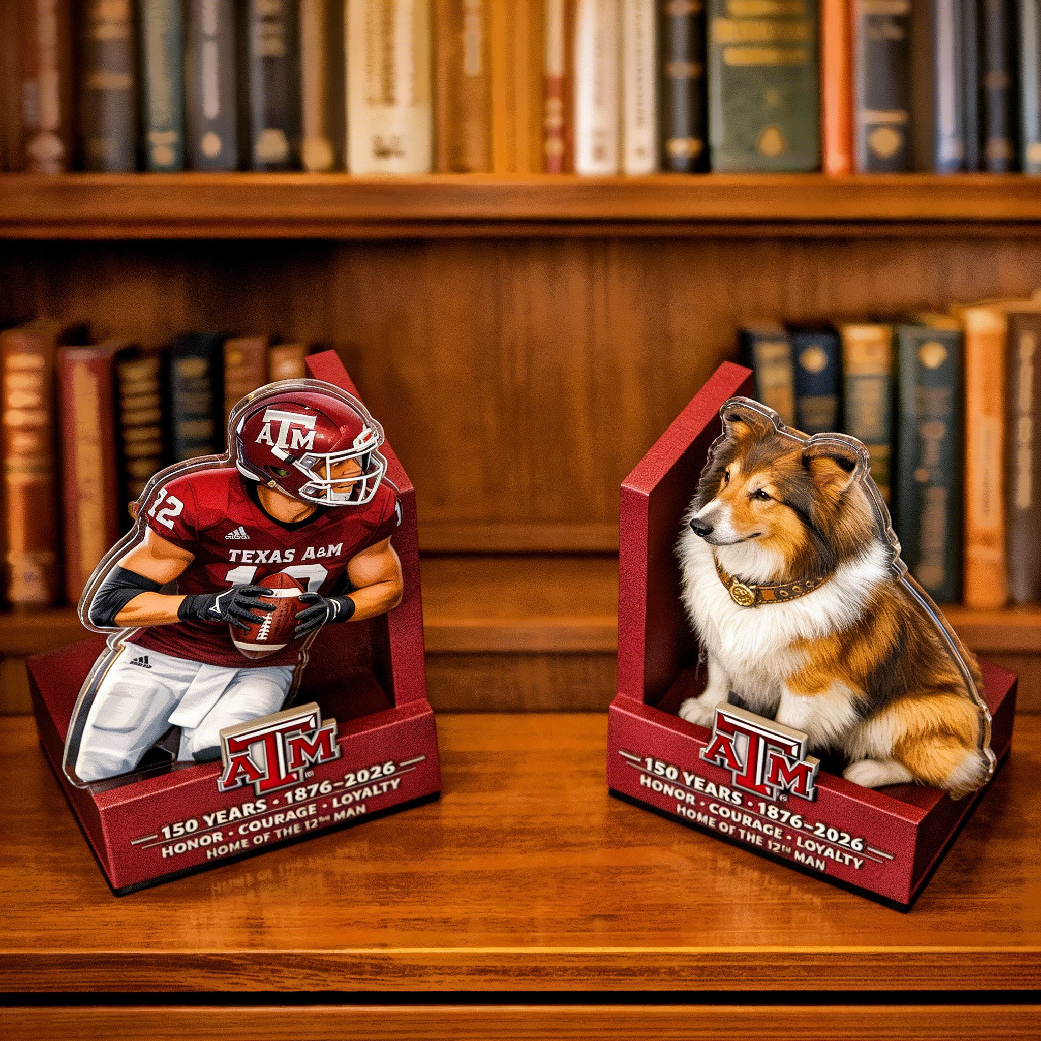 🏈📚 Use this Texas A&M 150th Anniversary Bookends to showcase a legacy of loyalty, leadership, and loud Saturdays in College Station.