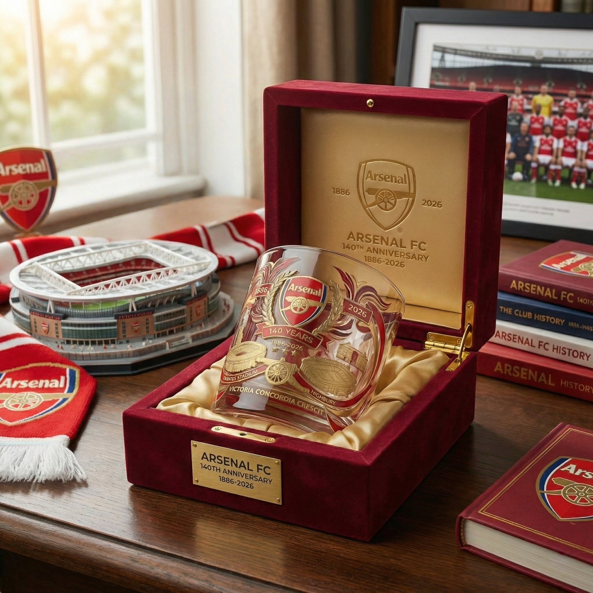 🥃 Marked with “140 Years · 1886–2026” and the timeless motto “Victoria Concordia Crescit”, this piece is more than a glass—it is a tribute to history remembered and loyalty endured. Created for devoted supporters and collectors, it stands as a symbol of Arsenal’s past, present, and future.