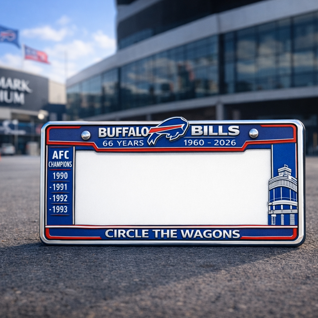 🐃🔵 Use this Buffalo Bills 66th Anniversary License Plate Frame to ride with pride through every upstate mile from 1960 to 2026.