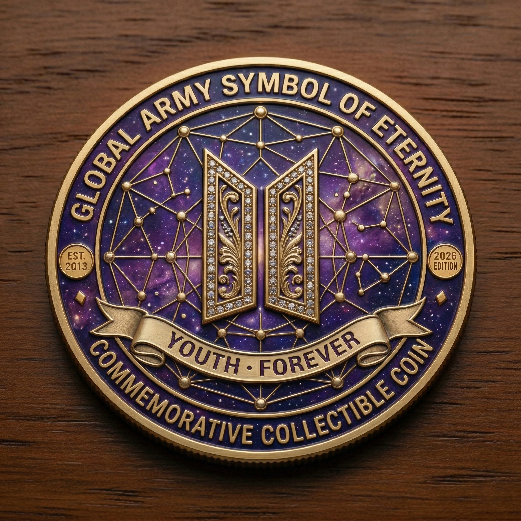 💎 Not a coin — it’s your “I never stopped waiting” promise, minted in gold & galaxy glow.For ARMY who cried at comeback teasers… and still believe in magic. ✨