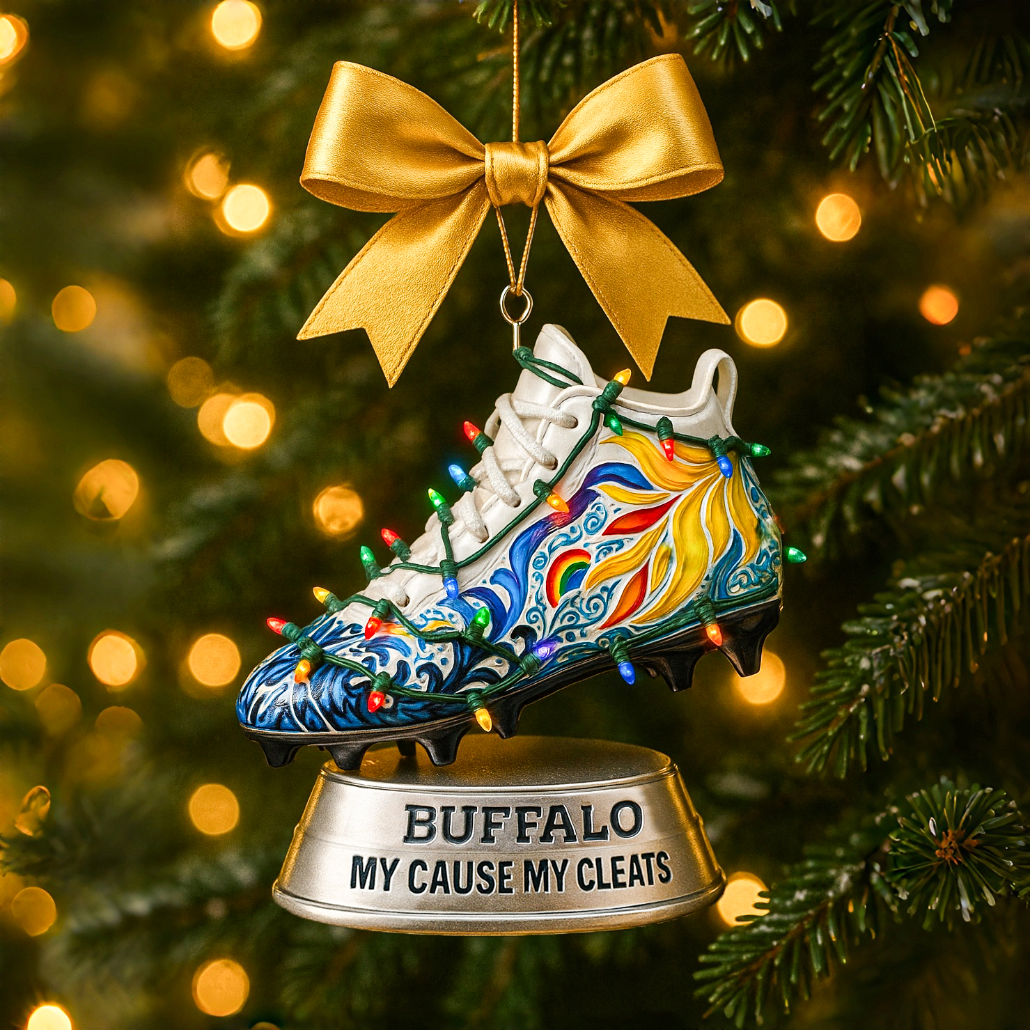 ✨🧩Turn your tree into game day with a purpose. This sculpted Buffalo 'My Cause My Cleats' Christmas ornament captures the spirit of players who lace up for something bigger than football.