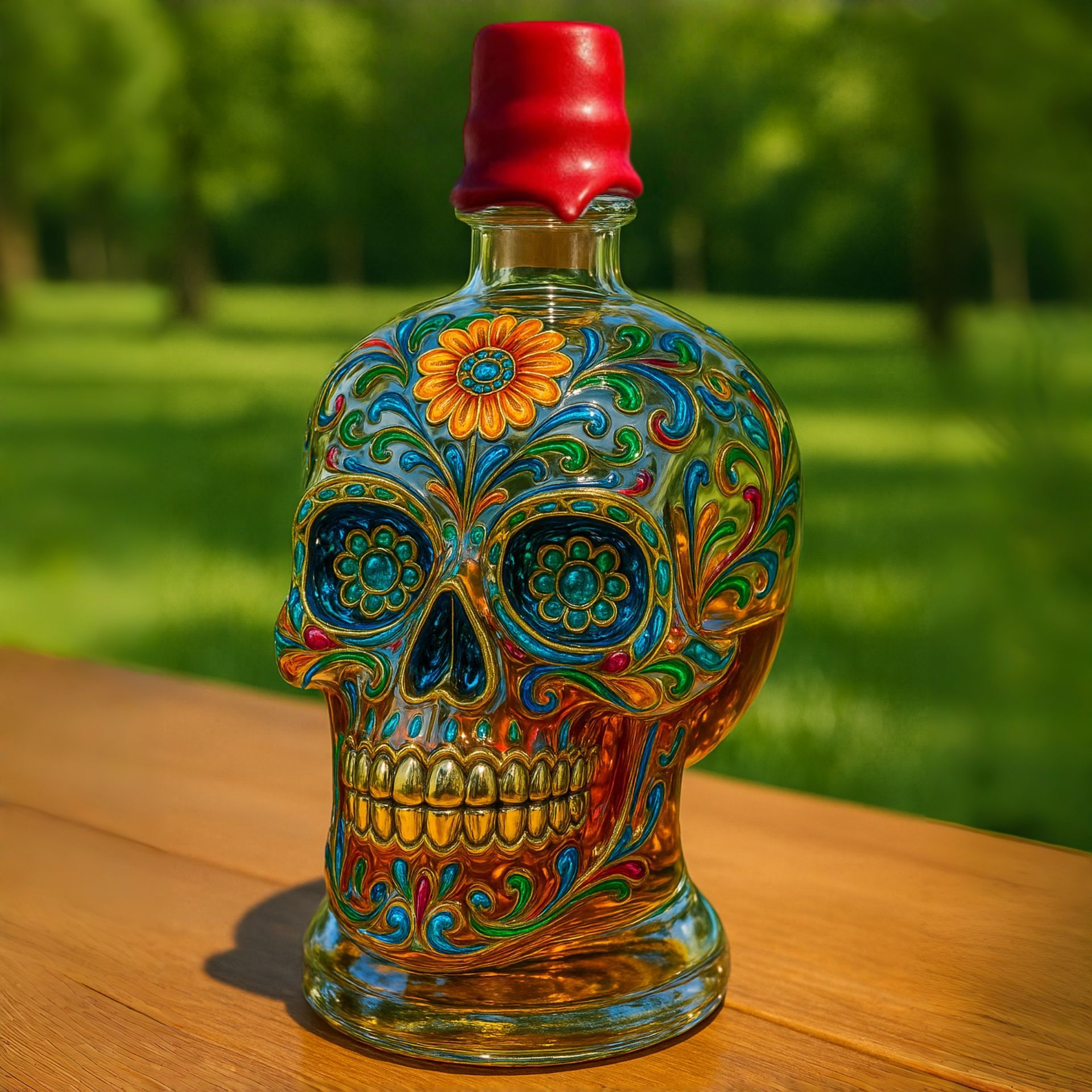 🔥 Shaped like a traditional sugar skull, this bottle reflects the vibrant colors, intricate art, and cultural spirit of Día de los Muertos—where remembrance and celebration come together.