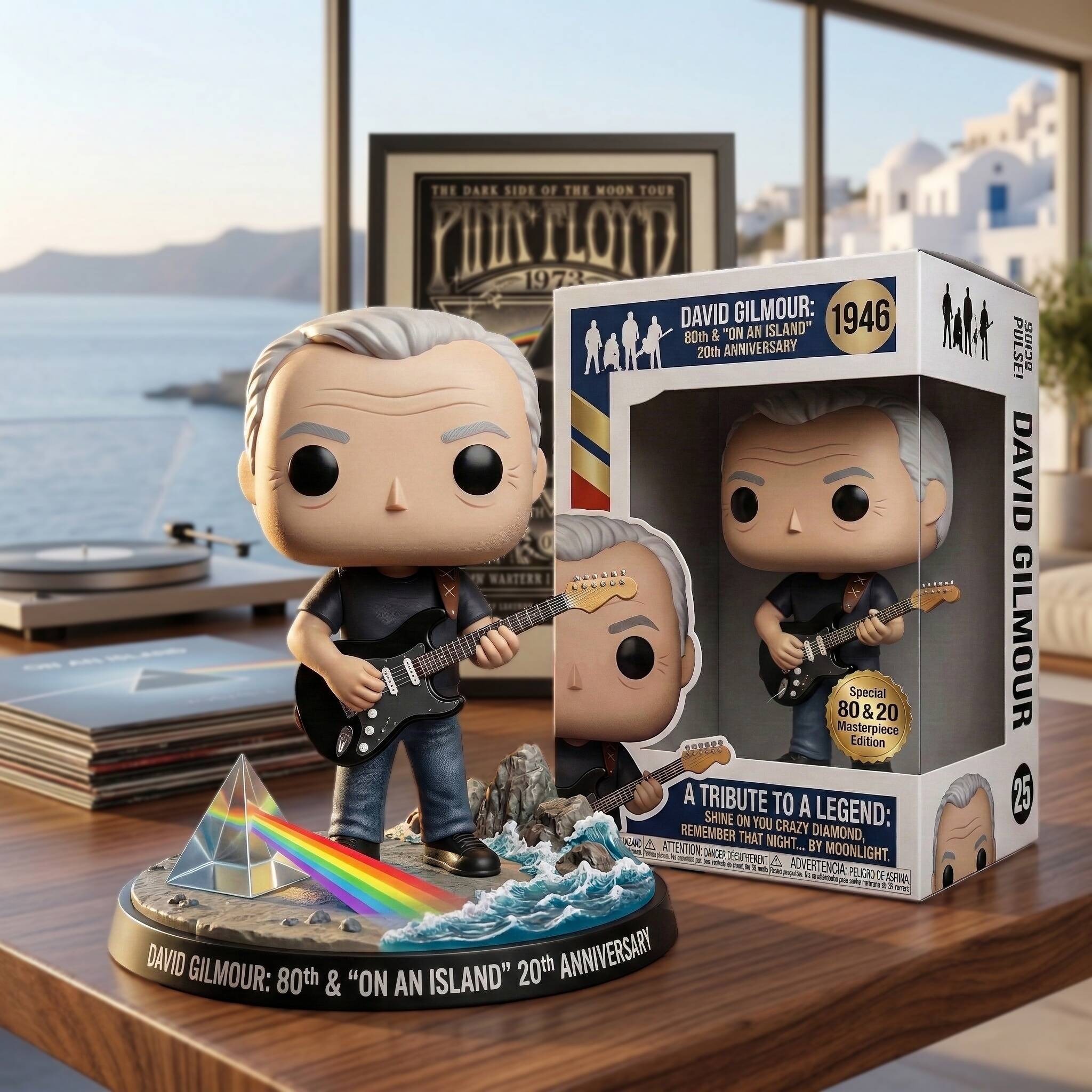 🎸 A tribute to a legend. Shine on. Celebrate the 80th birthday of music icon David Gilmour and the 20th anniversary of his masterpiece solo album, "On an Island." This commemorative figure honors the legendary guitarist whose soulful solos and ethereal soundscapes defined a generation of rock music.