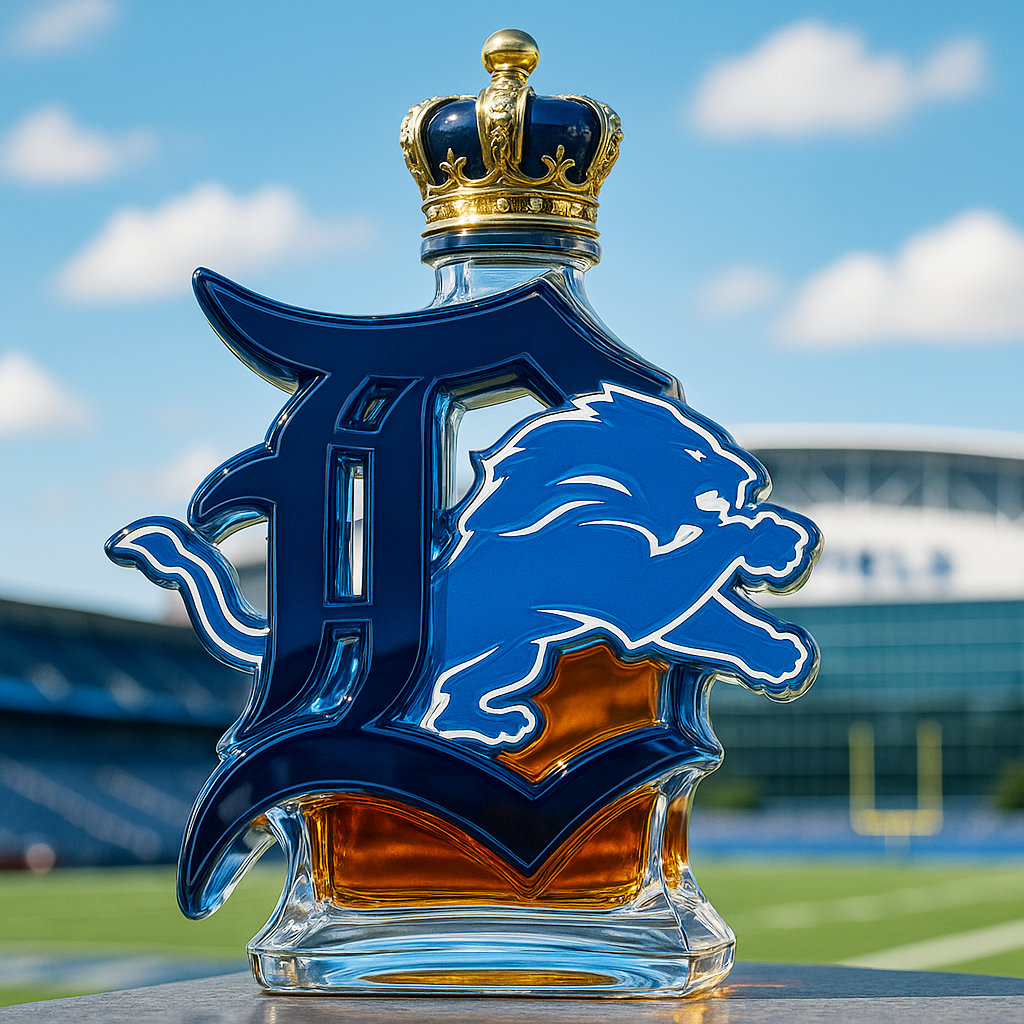 😍Celebrate Detroit pride like never before! This custom-designed whiskey bottle merges two legendary icons: the Detroit Tigers’ Old English “D” in deep navy blue and the Detroit Lions’ Leaping Lion in vibrant Honolulu Blue. Crafted for fans, collectors, and whiskey lovers alike — this is more than a bottle, it’s a statement.