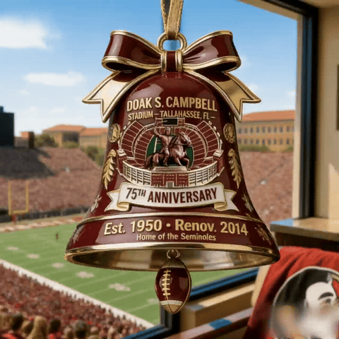 🏟️✨This Doak S. Campbell Stadium 75th Anniversary Christmas Bell Ornament honors one of college football’s most iconic homes — a place where passion, pride, and the spirit of the Seminoles have echoed since 1950. From the roar of game day crowds to the shining legacy of champions, every detail captures the soul of Tallahassee.