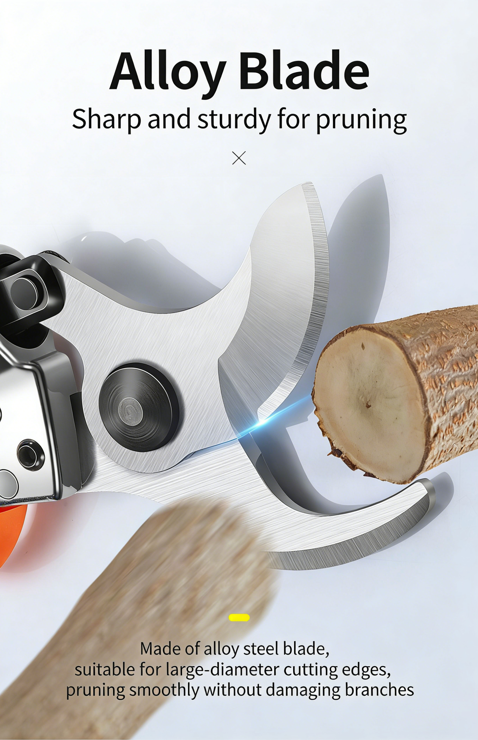 High-quality alloy steel blade, precision grinding process, sharp and wear-resistant, anti-rust and corrosion-resistant; the blade opening and closing is smooth, no jamming, ensuring clean cutting surface and avoiding branch damage.