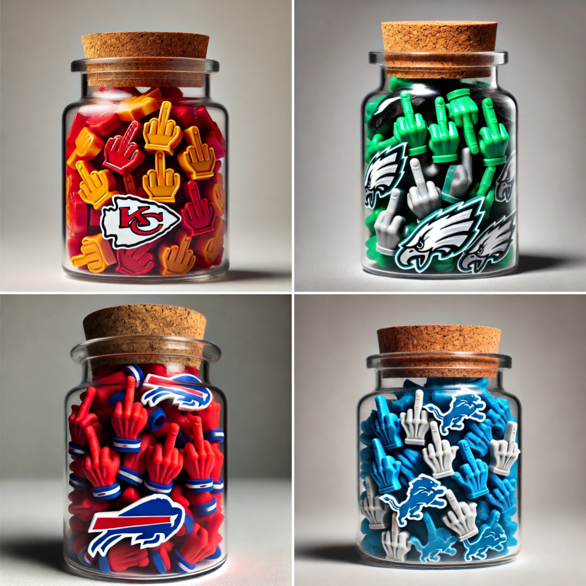 🤣Check out the ultimate collection of NFL team spirit with a twist—our Funny NFL Middle Finger Jars! Perfect for fans who want to add some humor to their game-day decor.