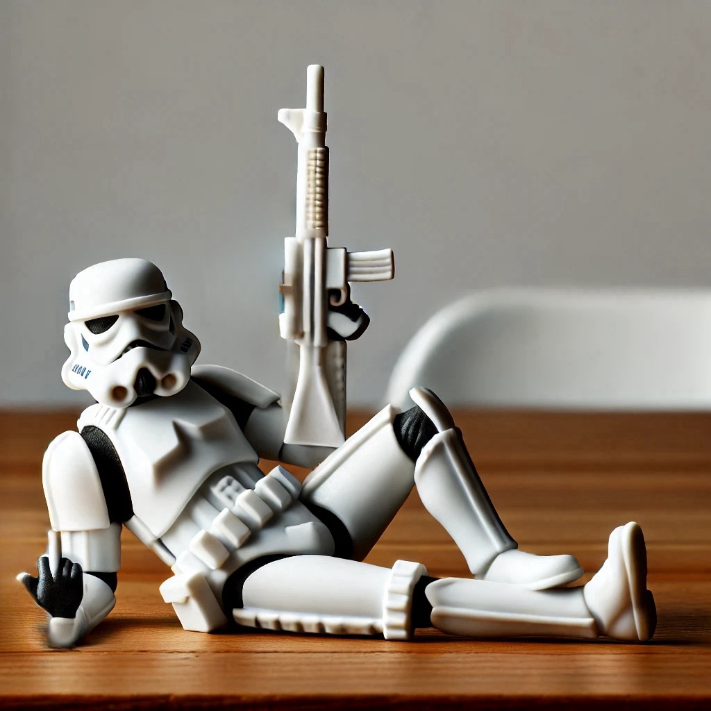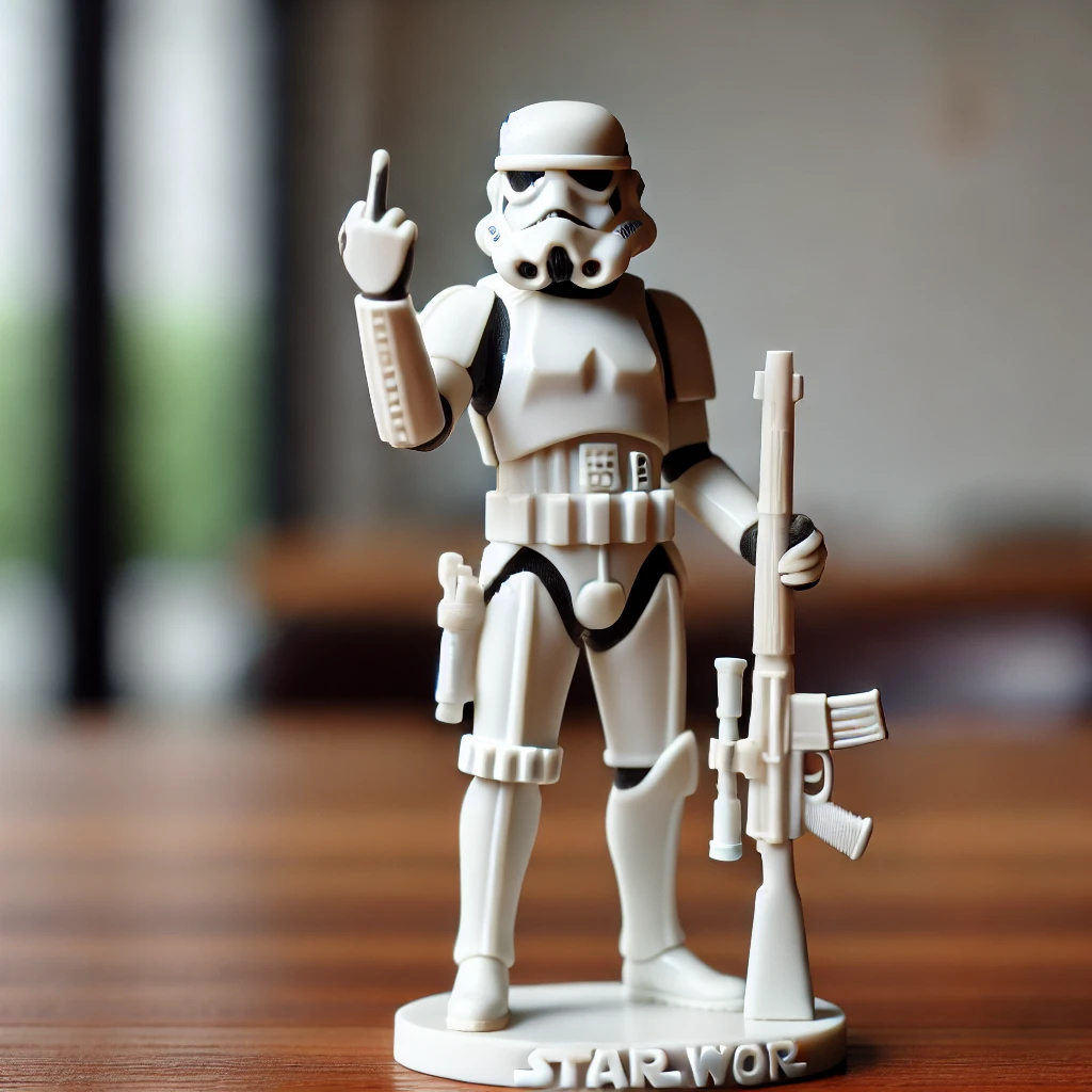 🤣🖕Show your defiance in style with this unique, cheeky stormtrooper figurine.