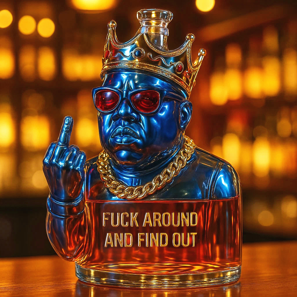 👑😍The Notorious B.I.G Whiskey Bottle will be the most eye-catching presence at parties and bars! Perfect for every loyal fan of The Notorious B.I.G , hip-hop enthusiast and whiskey bottle collector!