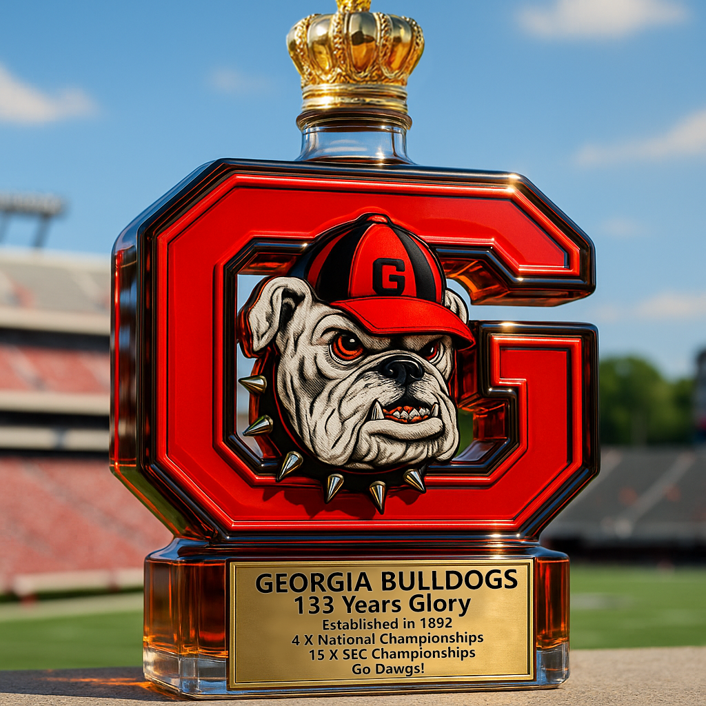😍Celebrate the indomitable spirit of the Georgia Bulldogs with the Glory Whiskey Bottle, a tribute to champions past and present.