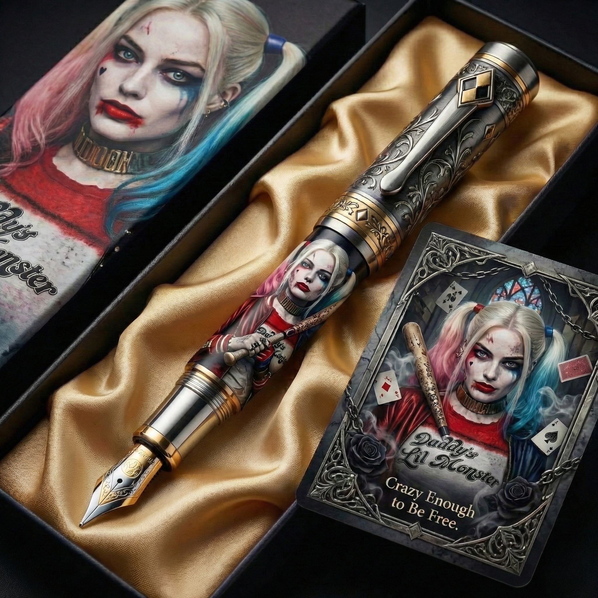 🖊️ This isn’t just a pen—it’s a statement.Inspired by Harley Quinn’s unapologetic spirit, this gothic collector pen celebrates independence, chaos, and the courage to rewrite your own story.