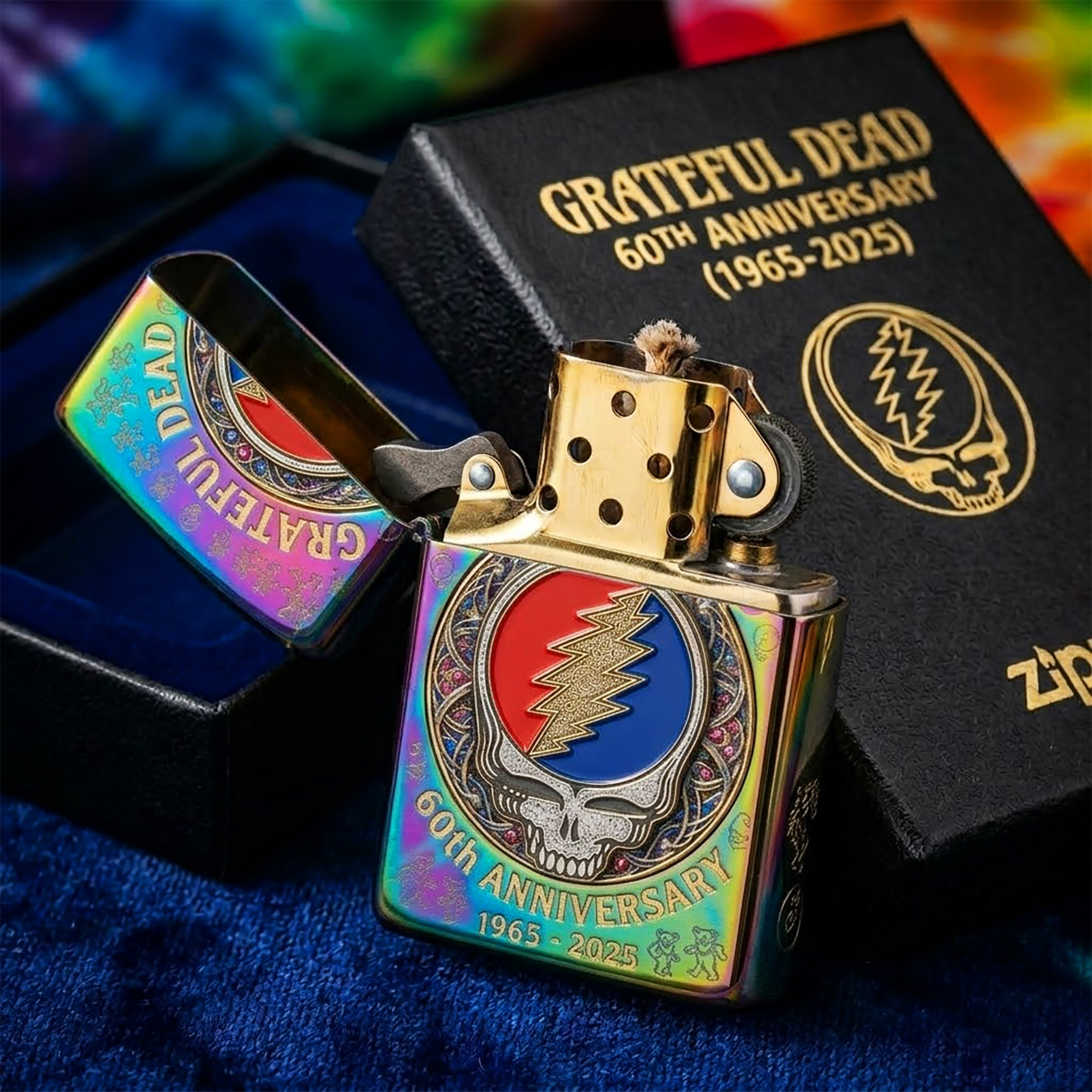 ⚡🌈 A Lighter Made for Deadheads.This anniversary lighter turns the classic Grateful Dead look into a bold collectible full of color, shine, and instant fan recognition. It’s a piece made to celebrate 60 years with style.