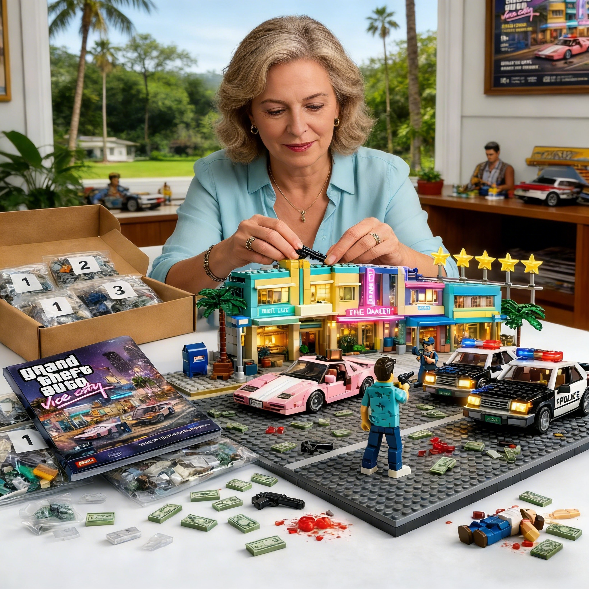 With nearly 3,000 pieces, detailed modular buildings, and a cinematic street layout, this set is designed to be built slowly, displayed proudly, and remembered forever. Perfect for your desk, game room, or as the ultimate gift for anyone who once ruled Vice City after midnight.