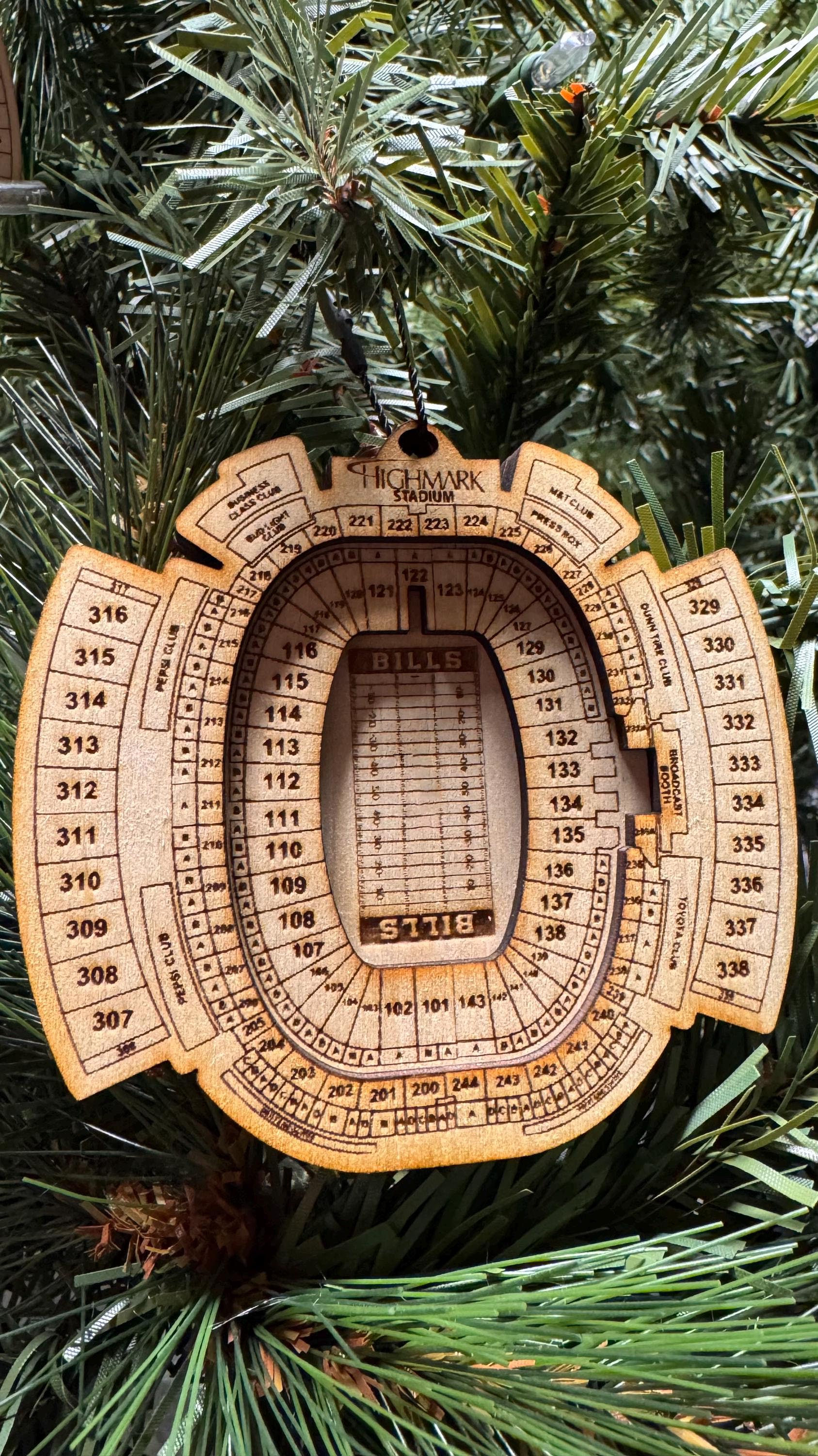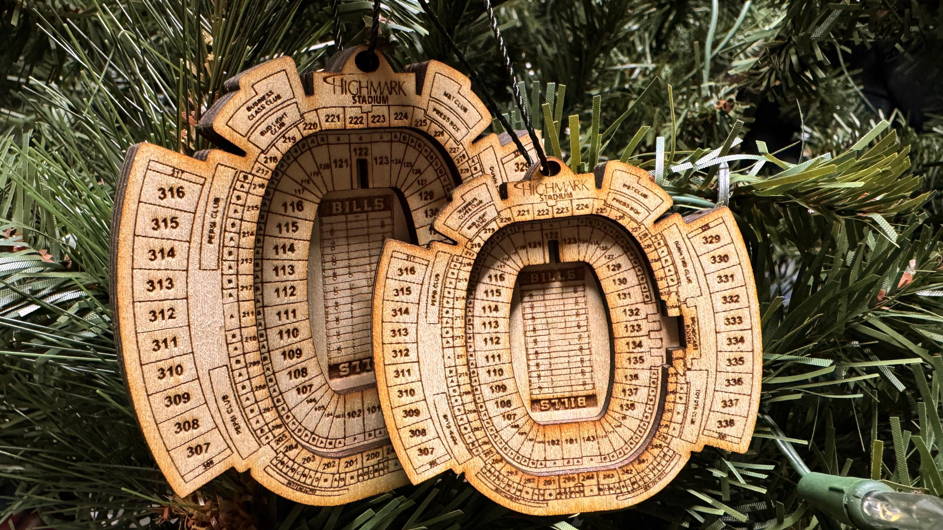 Crafted with precision and passion, each ornament features an intricate silhouette of Highmark Stadium, commemorating decades of gridiron glory.