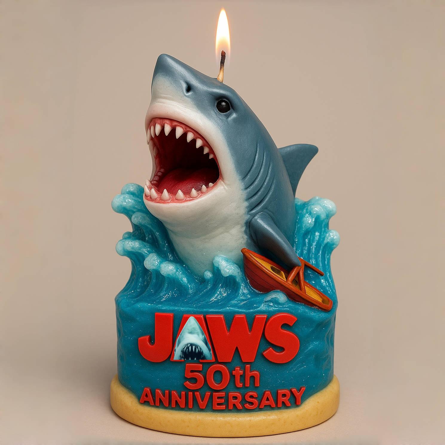 🕯️🦈🎬Use this JAWS 50th Anniversary Collector’s Candle to light the waters with cinematic suspense.