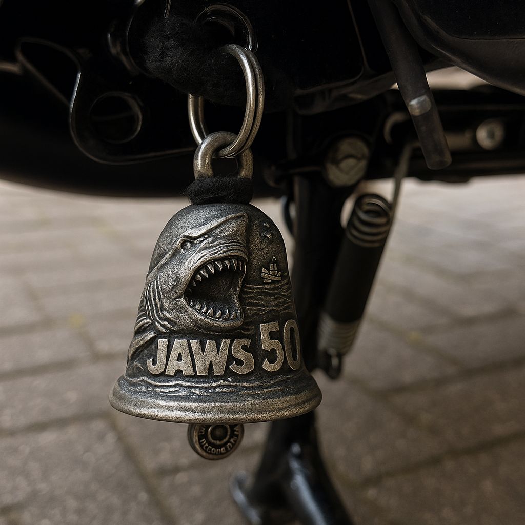 🦈🔔💥Feel the bite of legacy every time you ring in with these Jaws 50th Anniversary Motorcycle Bells!