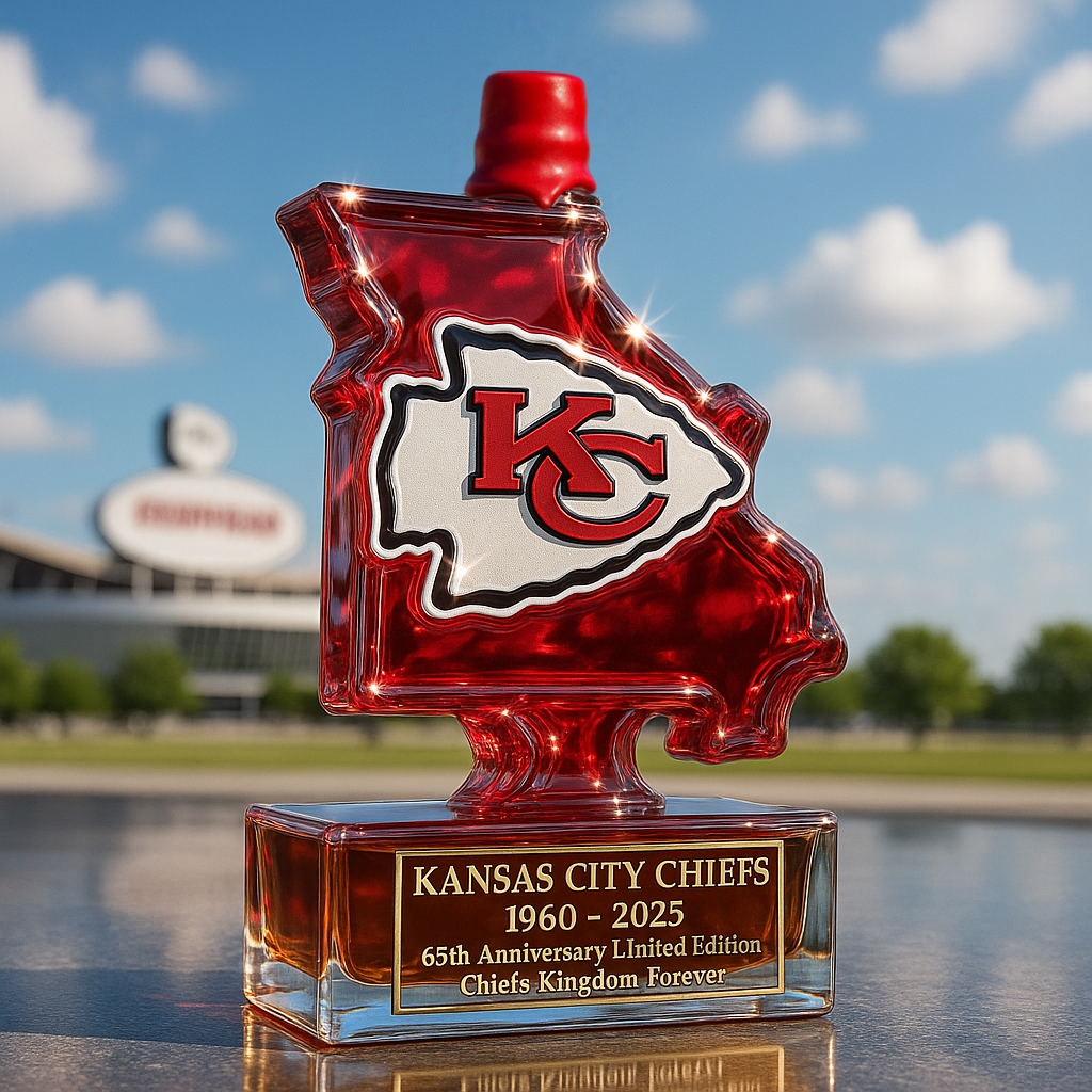 🏈🥃Raise a toast to gridiron greatness with the Kansas City Chiefs 65th Anniversary Whiskey Bottle!