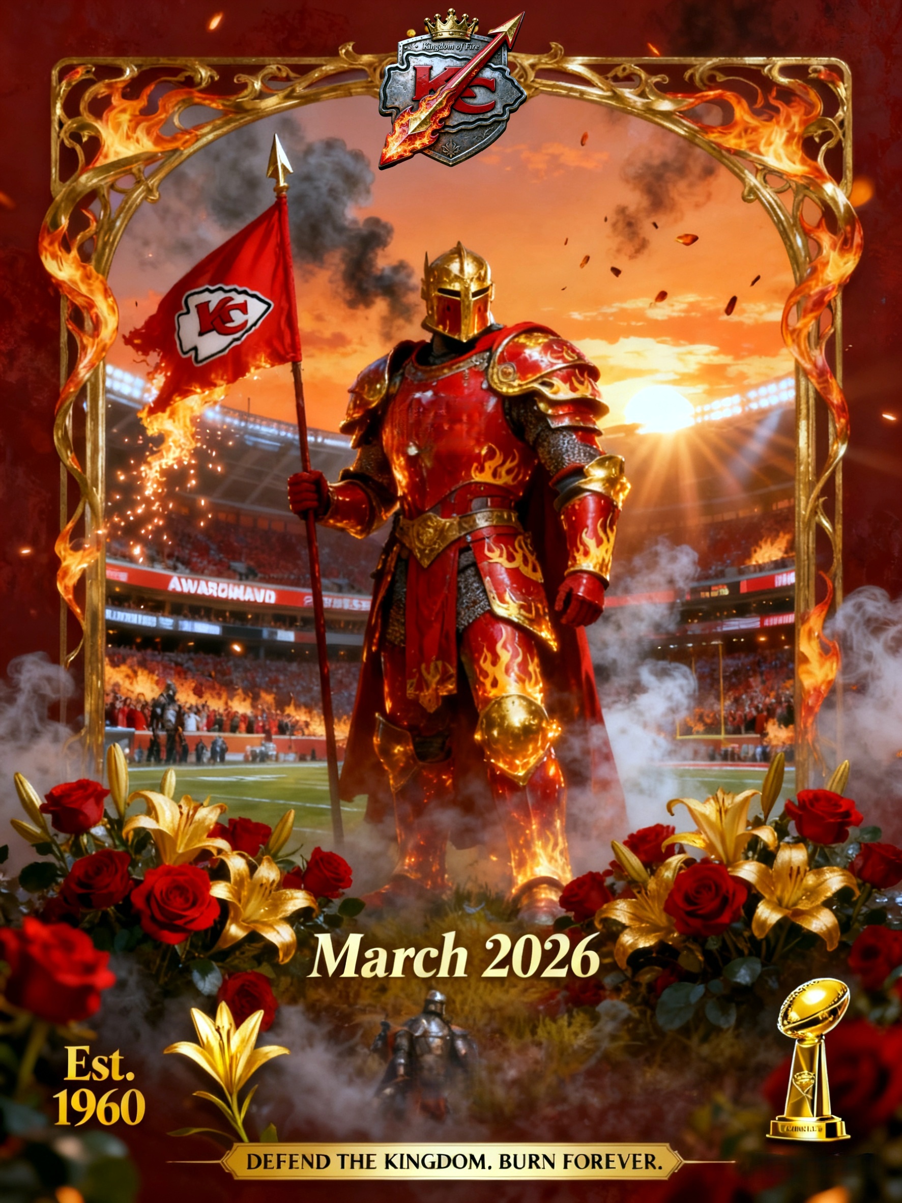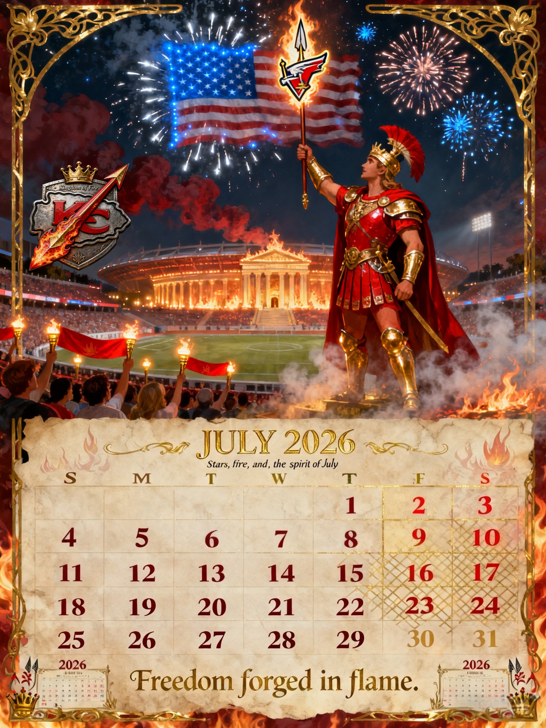 👑From the blazing January sunrise to the victorious march of July’s freedom flame, each illustration captures the heart of Kansas City football — a dynasty built on fire and faith.