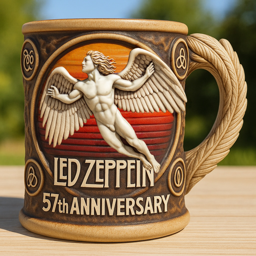 Pour yourself a stairway to morning with the Led Zeppelin 57th Anniversary Mug! 🎸☕⚡