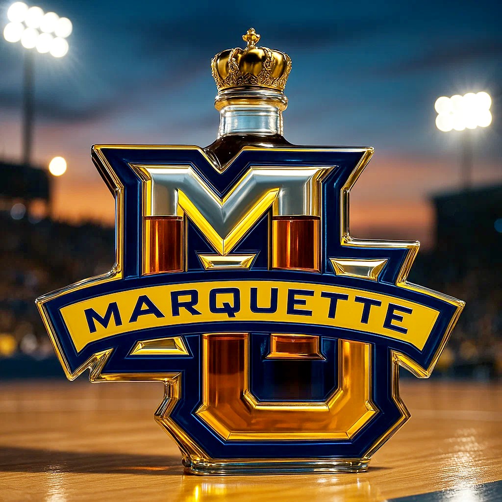 🦅 Step into the ultimate tribute to Marquette pride – a stunning, limited-edition glass masterpiece shaped entirely in the iconic MU crest, complete with the bold “MARQUETTE” banner.💛