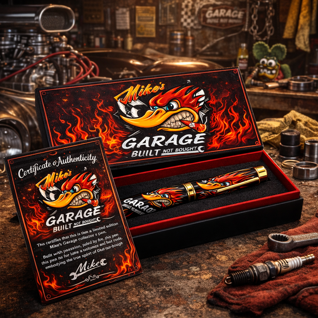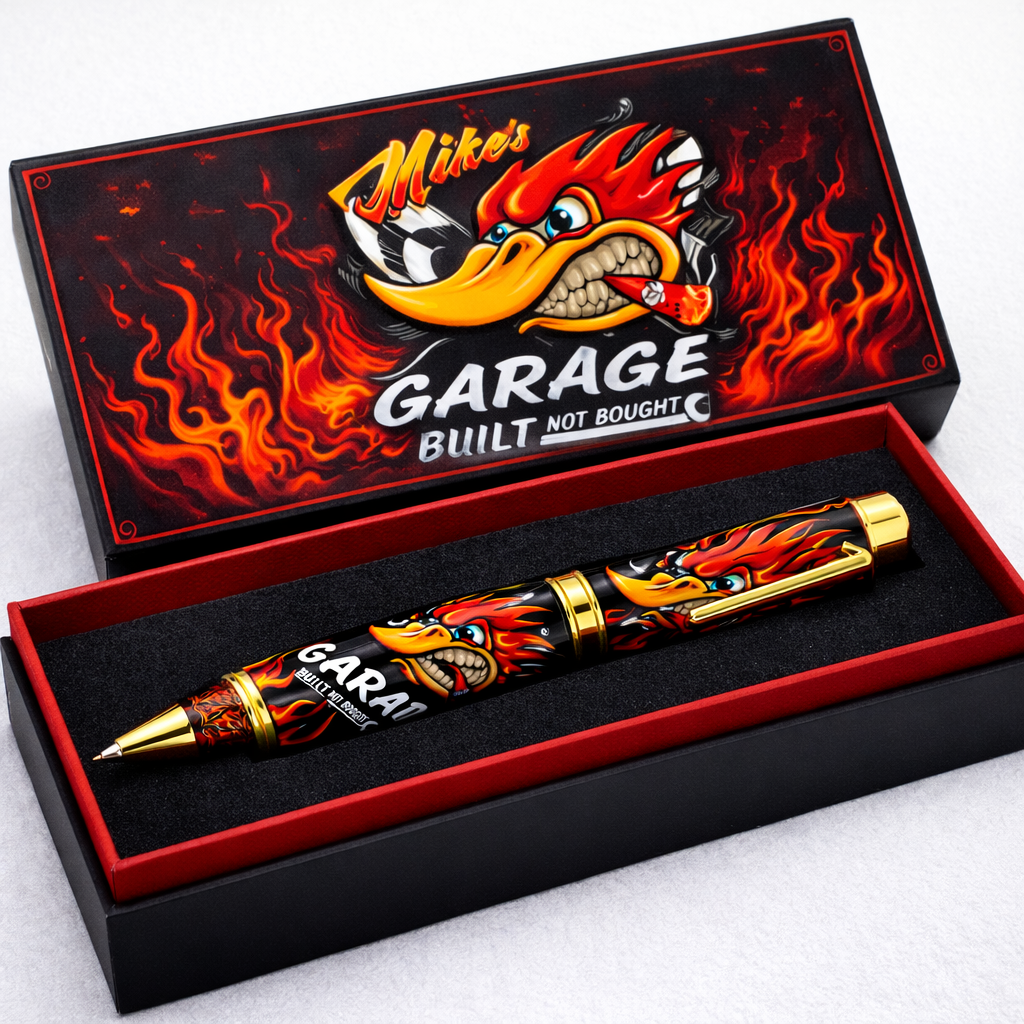 🛠️Designed with bold garage graphics and the words that matter: BUILT NOT BOUGHT.This pen is made for hands that turn wrenches, not just pages.
