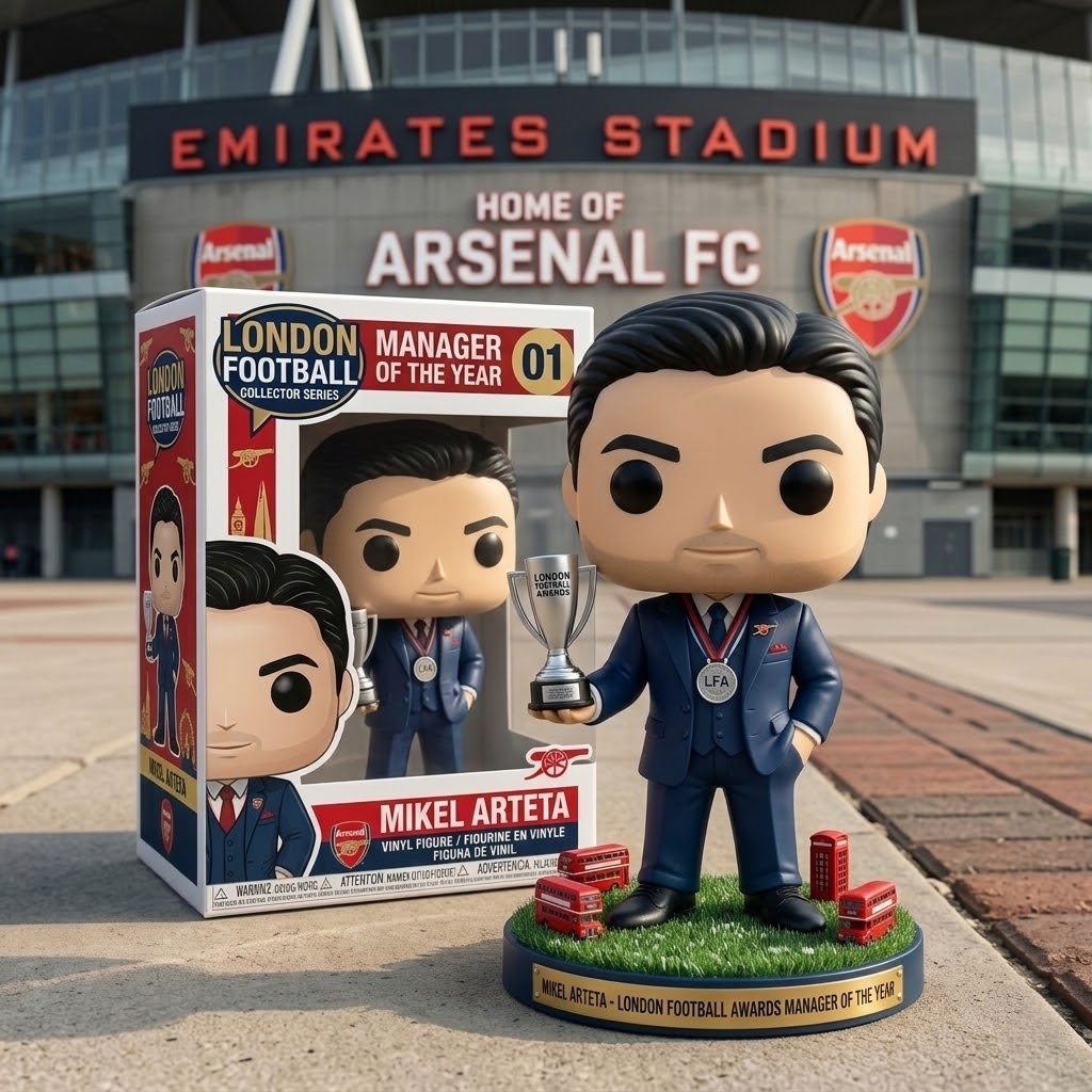 ⚽ Mikel Arteta London Football Awards – Manager of the Year Collector Figure.Celebrate Arsenal leadership with this commemorative figure honoring Mikel Arteta’s London Football Awards Manager of the Year recognition.