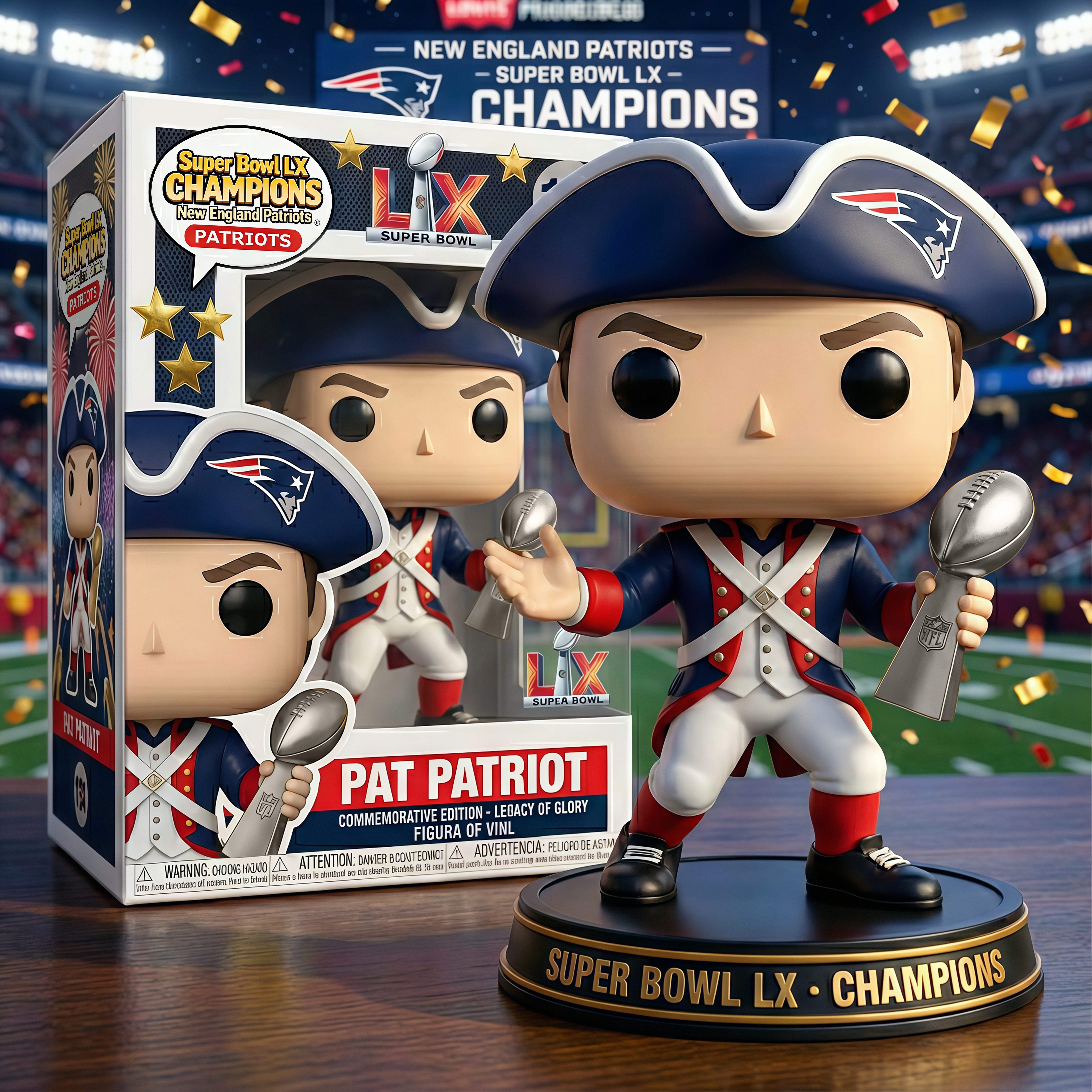 🏈🏆 This Super Bowl LX Champions Pop! figure honors the New England Patriots’ championship triumph, capturing the moment when a new leader carried the franchise back to football’s highest stage.