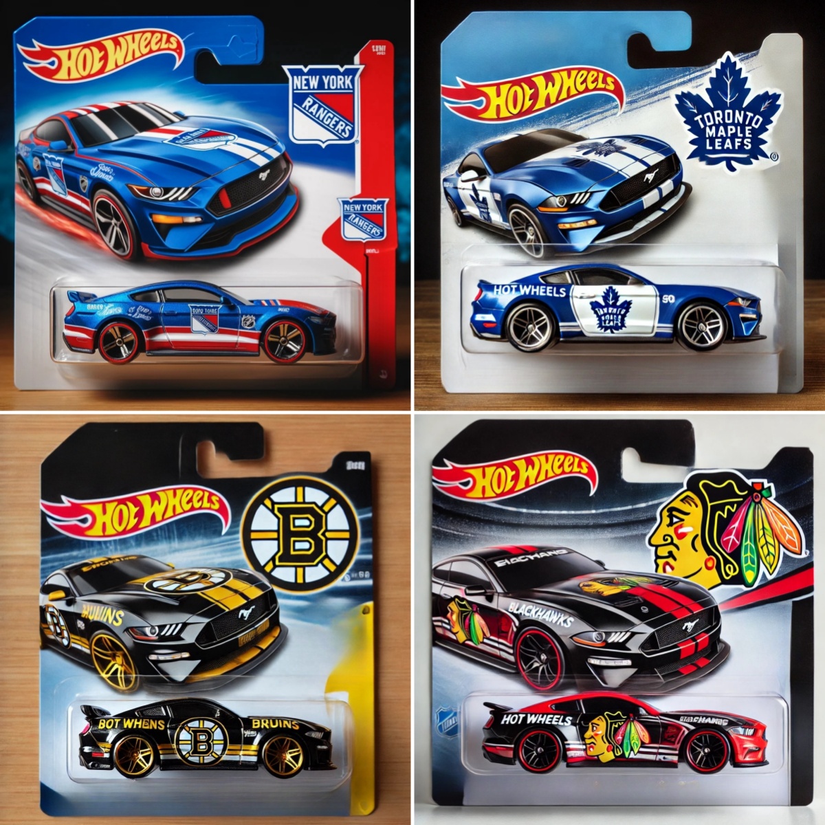 Inspired by the intensity of the game, this NHL-themed Ford Mustang Hot Wheels roars onto the scene with bold team colors and logos, bringing the energy of the rink to the open road.