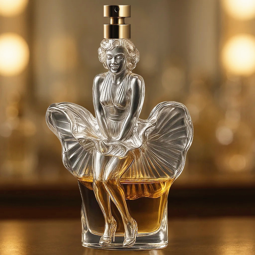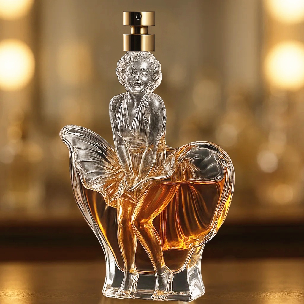 Marilyn Monroe's classic pose of pressing her skirt is vividly presented in this perfume bottle, with every drop of perfume telling her legend and charm.