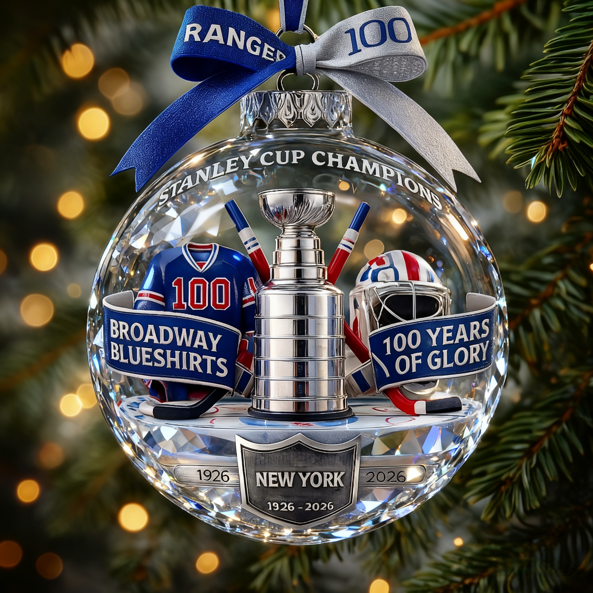 🏒🎄 Use this NYR 100th Anniversary Ornament to celebrate a century of Broadway hockey pride.