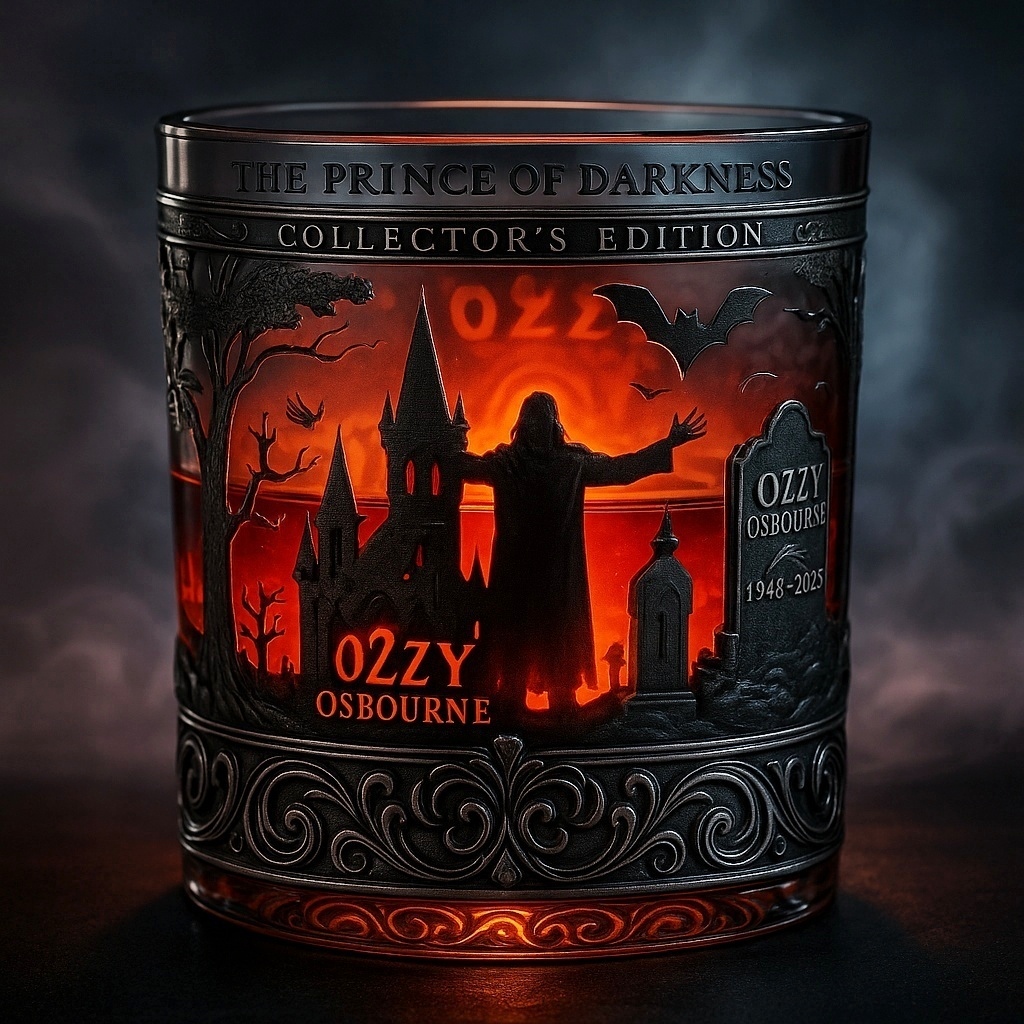🦇Gothic engravings immortalize the Prince of Darkness: bats, haunted spires, a shadowed grave, and Ozzy’s outstretched silhouette—an eternal symbol of rebellion.Inside, the amber flame of spirit echoes his legacy from 1948 to 2025. This is more than a bottle—it’s a toast to the man who ruled the night.
