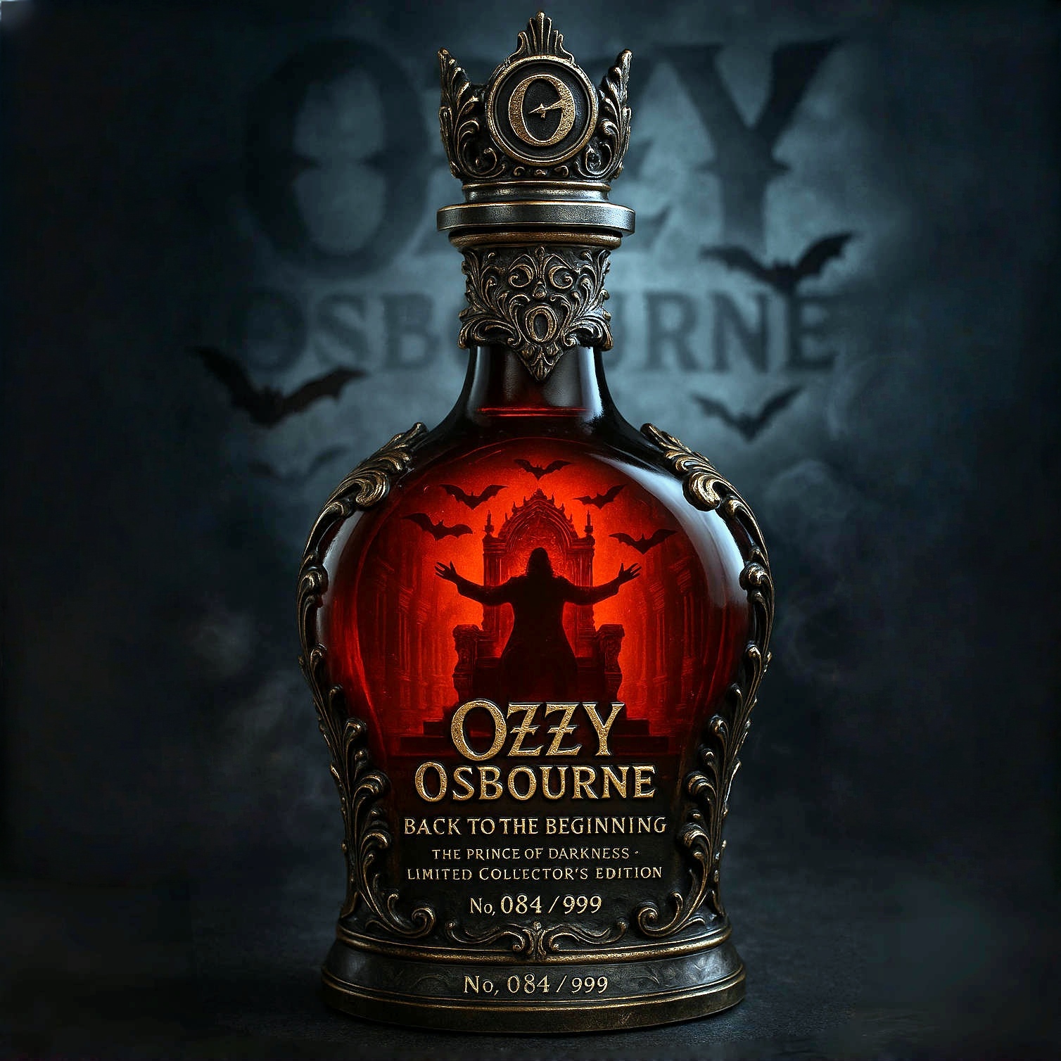 🦇 The crown of darkness is eternal—legends never fade. Raise a toast to the immortal legacy of the Father of Heavy Metal and Prince of Darkness — Ozzy Osbourne — with this “Back to the Beginning” Limited Edition Bottle and Collector’s Glass.