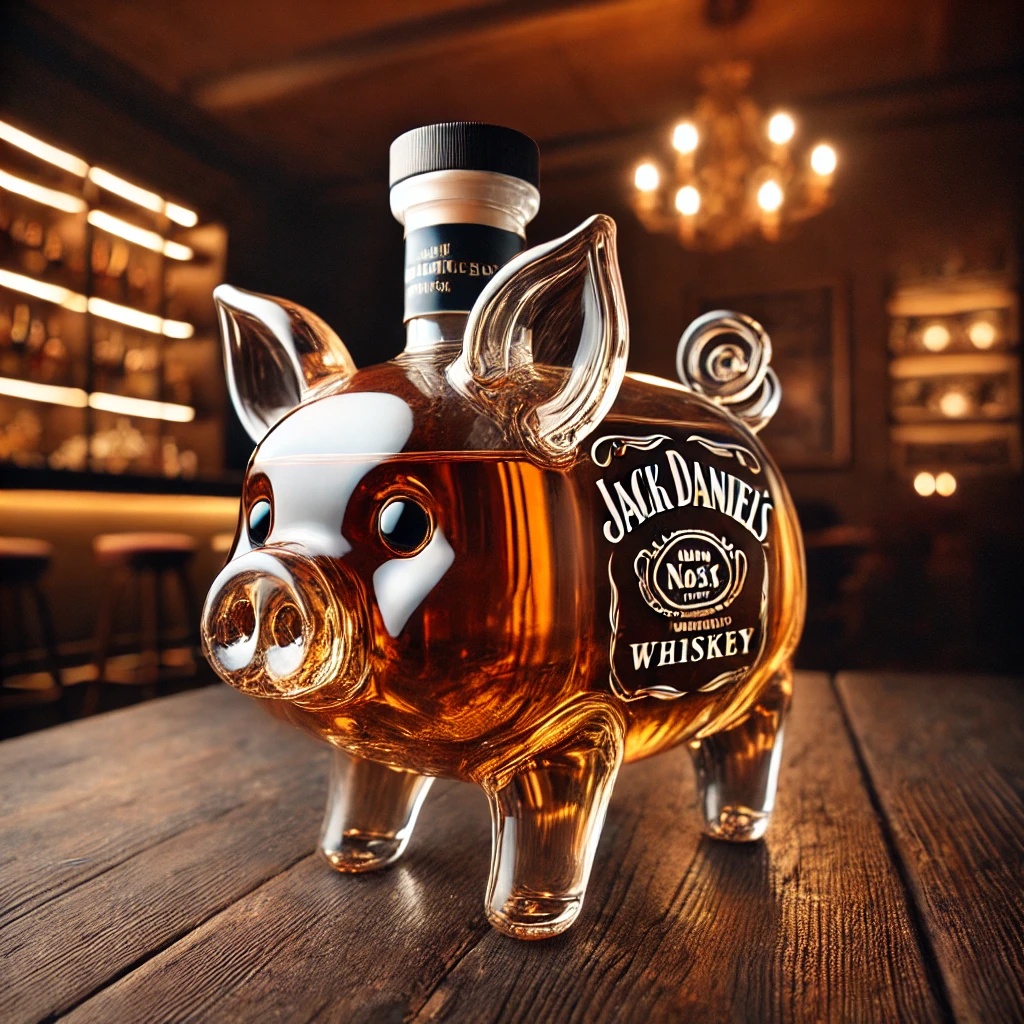 Shaped like a plump and cheeky pig, this bottle brings a rustic, lighthearted vibe to your bar. With its detailed snout, curly tail, and a glint of mischief, it’s the perfect mix of countryside whimsy and refined sipping.