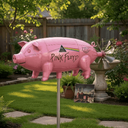 Crafted from durable, weather-resistant metal with a premium high-gloss finish, it’s built to withstand the elements and bring progressive rock energy to lawns, flower beds, or patios. Perfect for devoted Pink Floyd fans, classic rock collectors, or anyone who wants their outdoor space to echo with the spirit of Animals, it turns gentle breezes into pure nostalgia as the blades whirl under sunlight against blooming flowers.