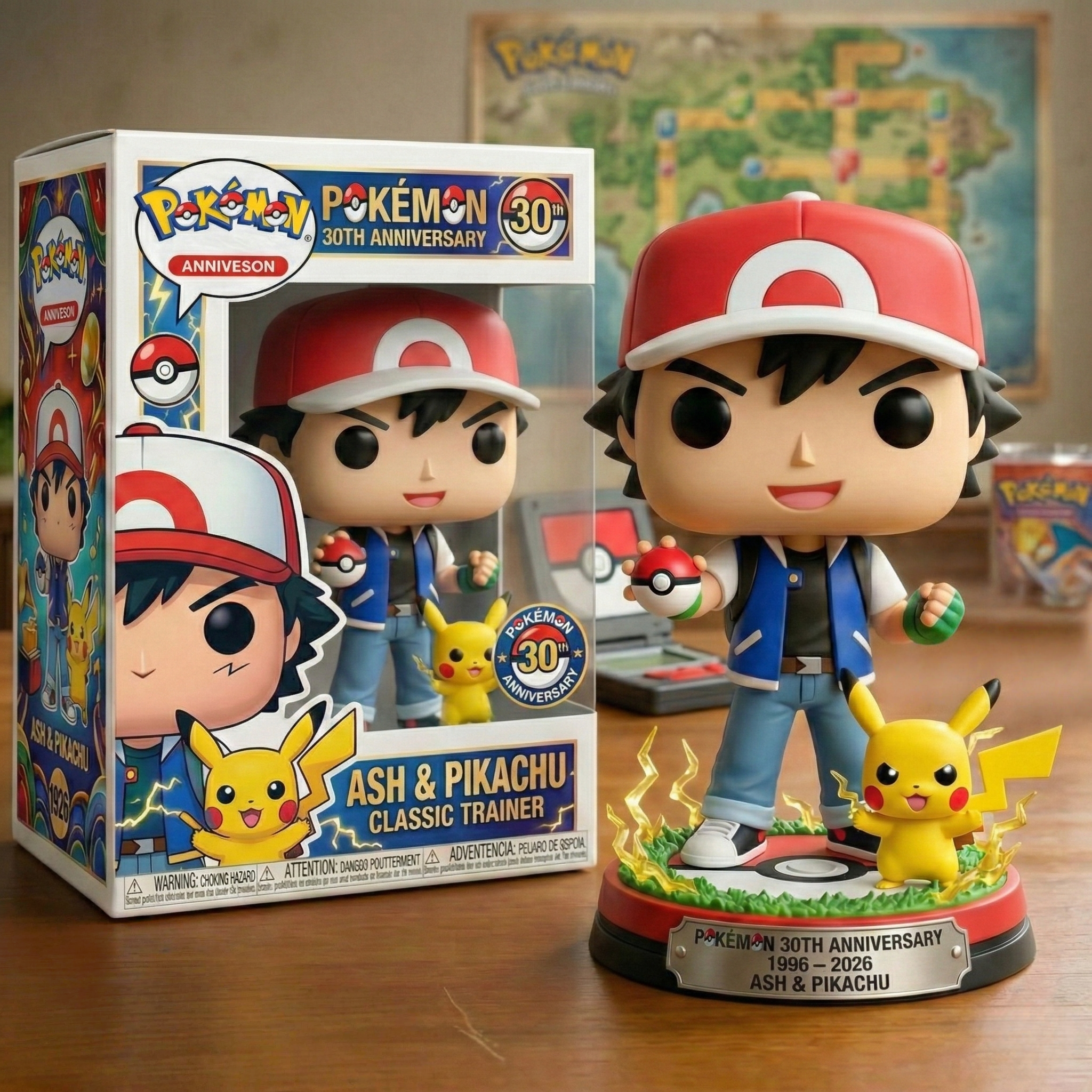 ⚡ A Legendary Trainer DuoThis anniversary edition features:Classic Ash trainer design with Poké Ball in hand,Pikachu with dynamic electric effect base,30th Anniversary commemorative plaque (1996–2026),Lightning-inspired display platform,Premium anniversary packaging artwork,Collector-grade sculpted finish,Every detail honors the original era that shaped Pokémon history.