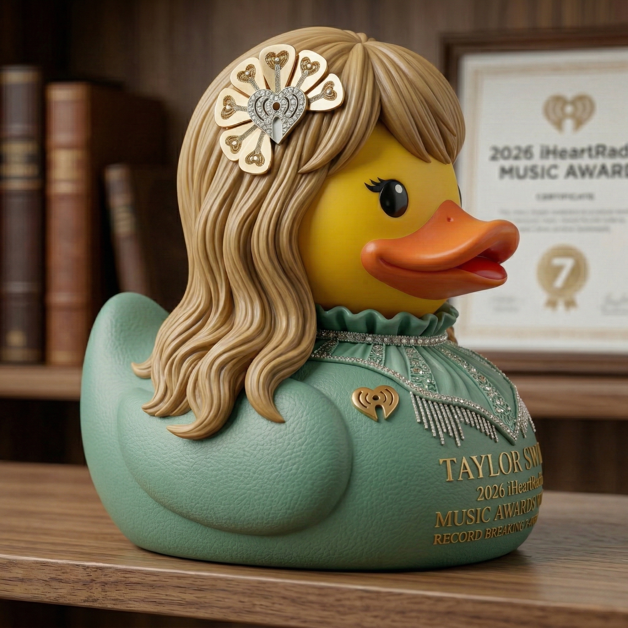 🌟🎶 For Fans Who Grew Up With Every Song. Inspired by the global influence of Taylor Swift, this collectible duck captures the elegance, confidence, and storytelling that defines a generation of music. From the signature soft glam look to the award-winning moment it represents, this piece is made for fans who feel every lyric.