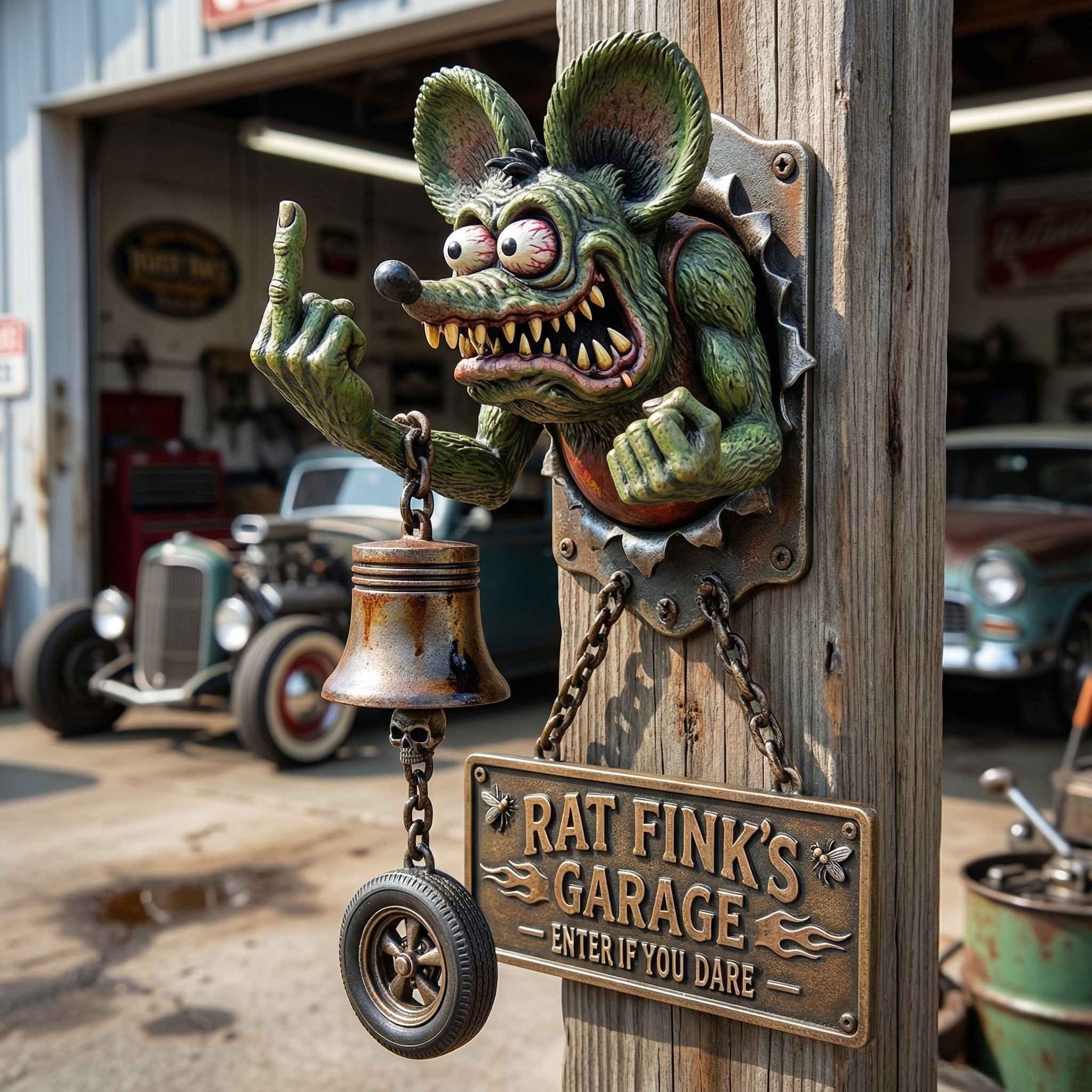 🐁Bring instant hot-rod attitude to your space. This 3D garage bell features a wild-eyed gremlin character, rugged “metal” detailing, and a dangling chain bell—perfect for garages, workshops, man caves, and bars.