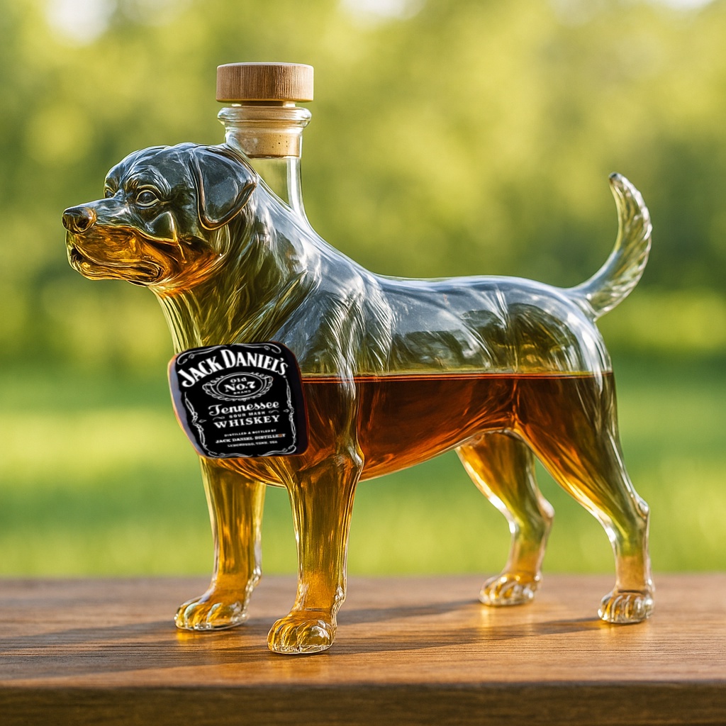 Shaped like the strong and fearless Rottweiler, this whiskey bottle features defined muscles, alert eyes, and a commanding presence. It’s a tribute to a breed known for its protective nature and unwavering loyalty—now captured in a bottle as bold as the dog itself.
