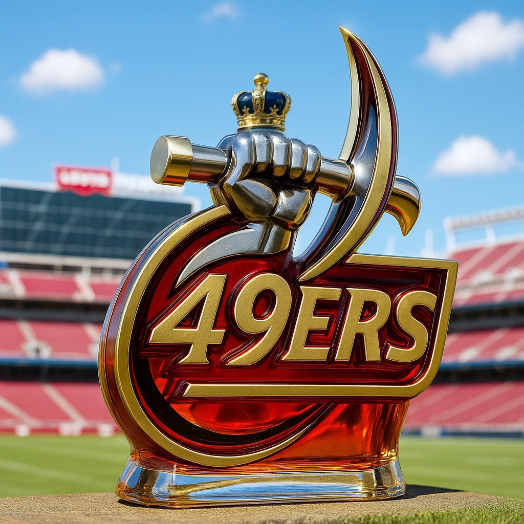 Inspired by the iconic San Francisco 49ers, this limited-edition whiskey bottle is sculpted in the bold silhouette of the team’s miner and pickaxe emblem.
