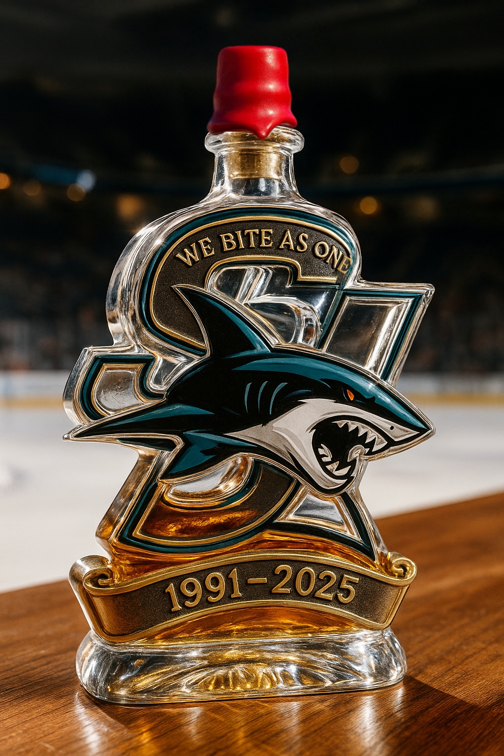 🦈🥃❄️Feel the chill of the ice meet the roar of the crowd with this San Jose Sharks 34th Anniversary Whiskey Bottle!