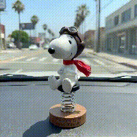 💖With his flight cap, goggles, and signature red scarf, Snoopy looks as if he's about to embark on a new adventure in his "imaginary fighter jet." As the vehicle moves, a spring mechanism allows Snoopy to sway gently, adding a touch of relaxation and fun to your driving experience.