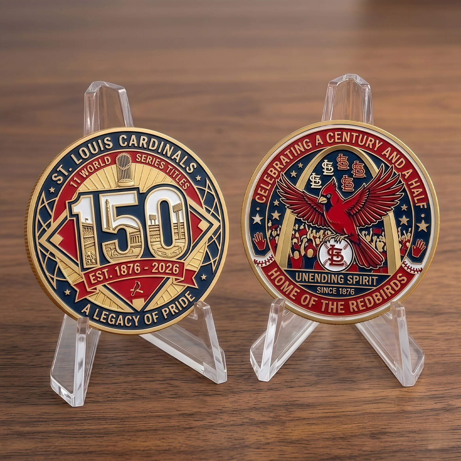 ⚾ St. Louis Cardinals 150th Anniversary Commemorative Coin — Legacy of Pride Edition.Celebrate 150 years of Cardinals history (1876–2026) with this commemorative collector coin honoring one of baseball’s most storied franchises.