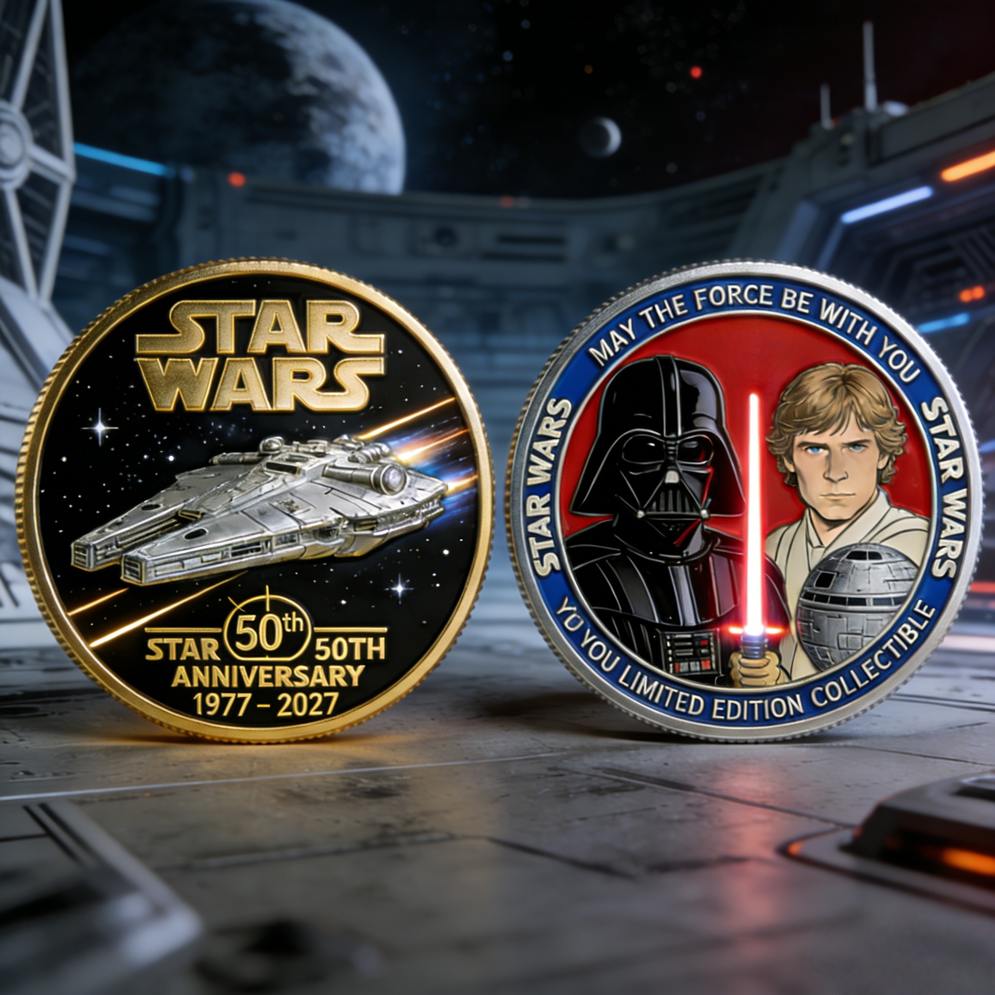 🌌✨ Fifty Years of Star Wars. A Galaxy That Changed Cinema Forever. This is not just a commemorative coin — it is a tribute forged in starlight, destiny, and the eternal battle between light and dark.