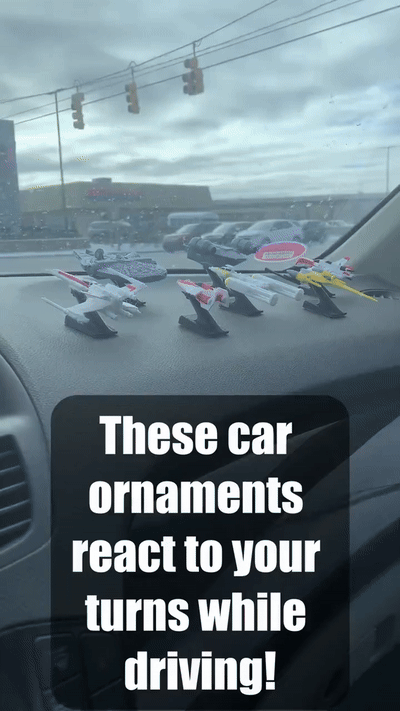 Decorate your car dashboard with these fun Star Wars starship car ornaments! Watch as they drift and spin as you drive!