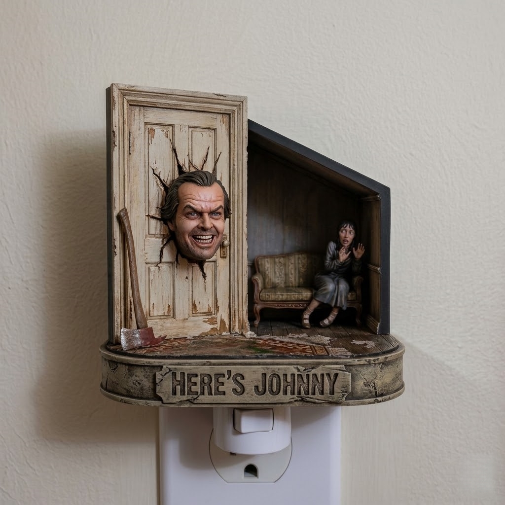 😱💡The moment the lights come on, it's not just light illuminating the room, but the fear of classic movies is instantly reawakened—the cry of "HERE'S JOHNNY!" is no longer just a line, but a piece of horror art on your wall, and a unique ritual for movie fans.
