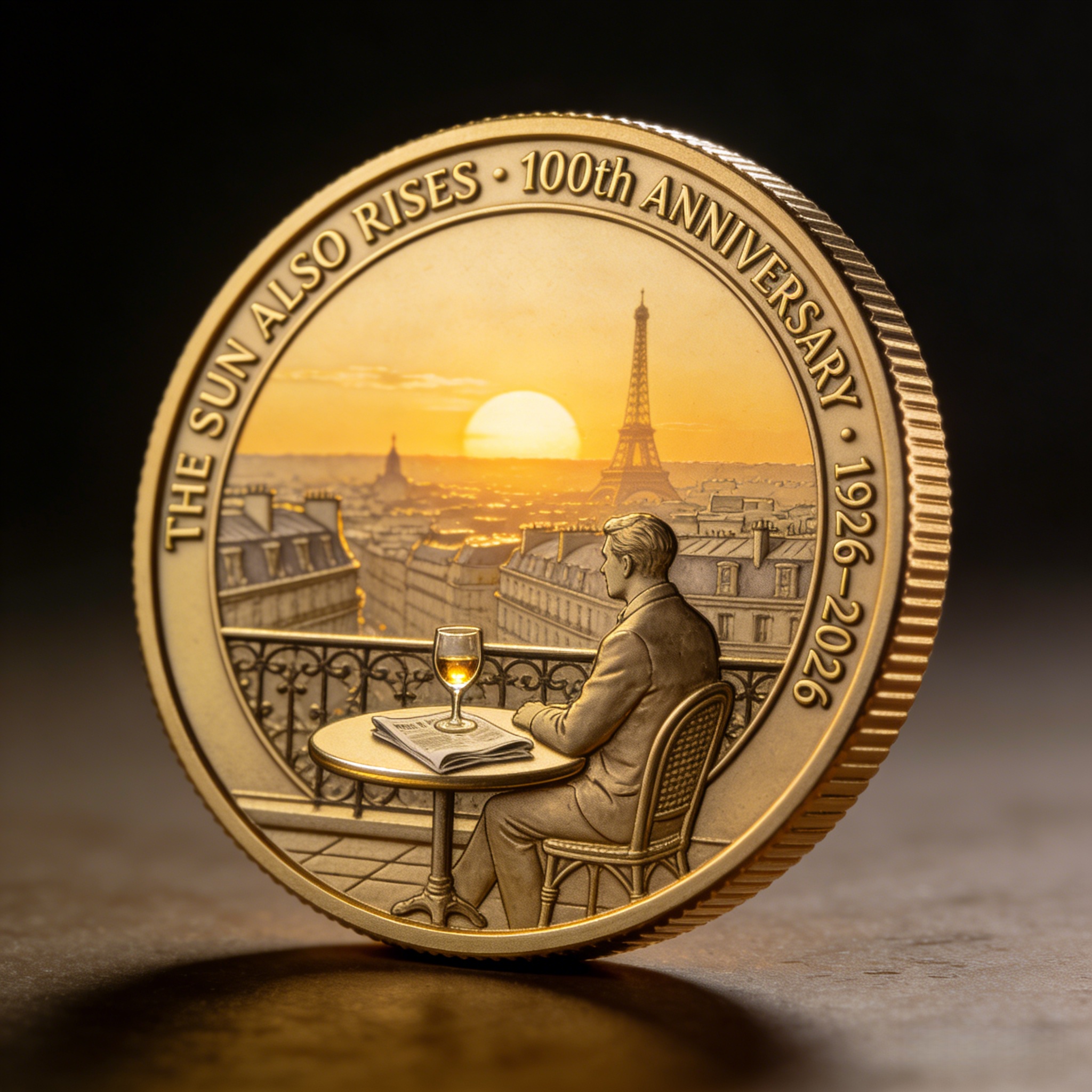 Released to mark the 100th Anniversary of The Sun Also Rises, this commemorative coin captures the quiet strength at the heart of Hemingway’s most defining work.