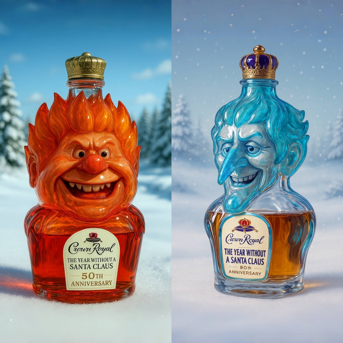 ❄️🔥🥃Turn up the chill or bring the heat with this The Year Without a Santa Claus 50th Anniversary whiskey bottle!