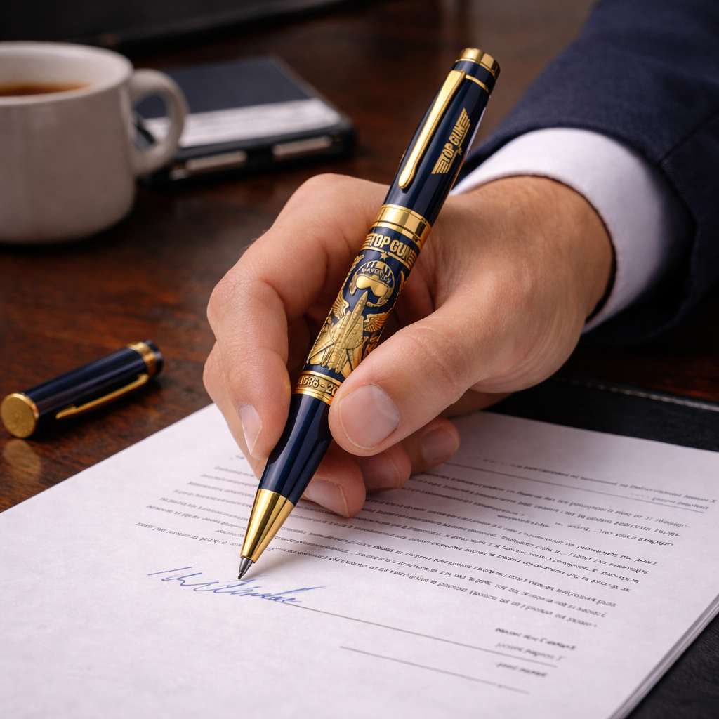 This 40th Anniversary Top Gun commemorative pen is for the people who still get chills from fast jets, bold decisions, and doing things with confidence. The deep navy body, gold accents, and engraved aviation artwork don’t whisper — they announce. Put it on your desk and it instantly says: “Yeah… I don’t do average.”